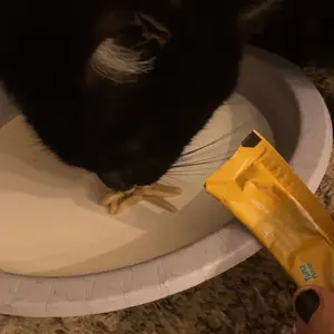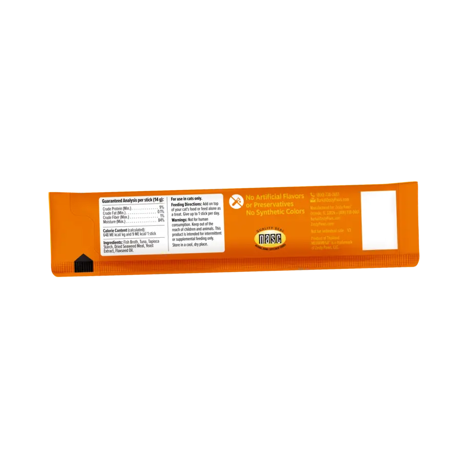 Add on top of your cat's food or feed alone as a treat. Give up to 1 stick per day.