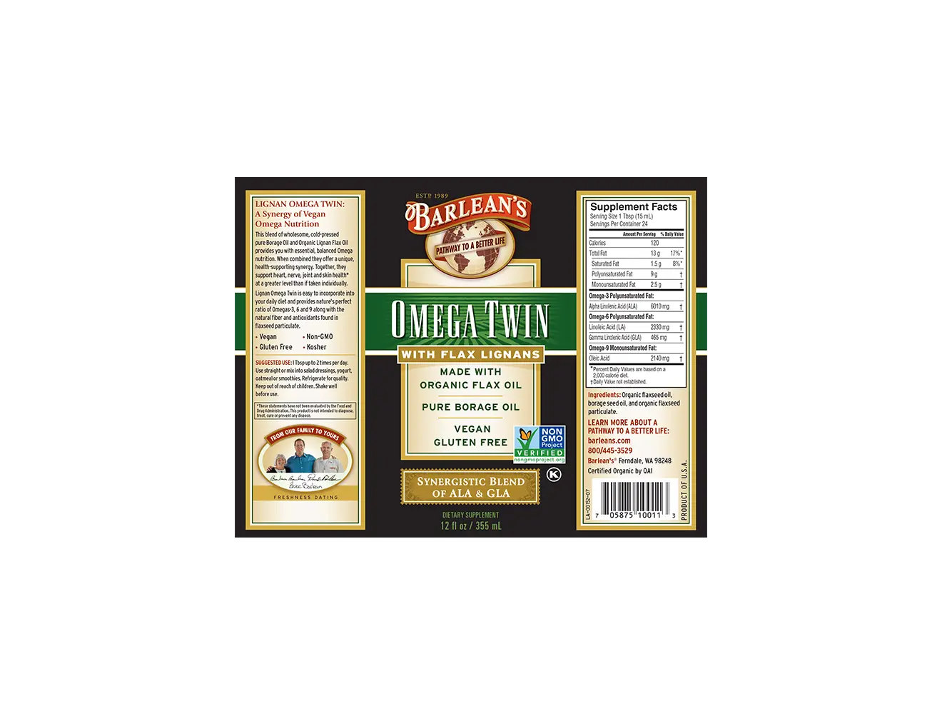 ·Organic, Cold-Pressed: Barlean’s Lignan Omega Twin blend organic flaxseed oil and pure borage oil.