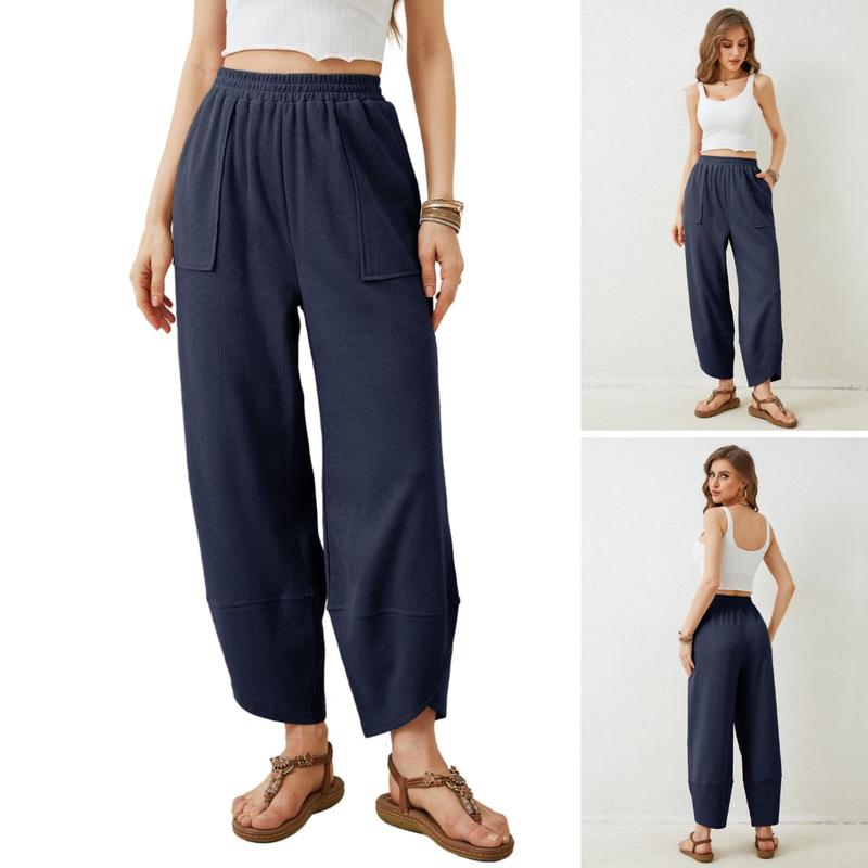 Β·Versatile Style: Beachy and effortless, this cozy pants is featured in a slouchy, pull-on silhouette with curved hem detailing and smocked waistband for ease, perfect for pairing with crop top, vests, and shirts.