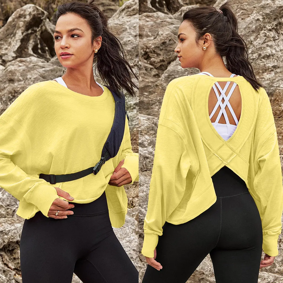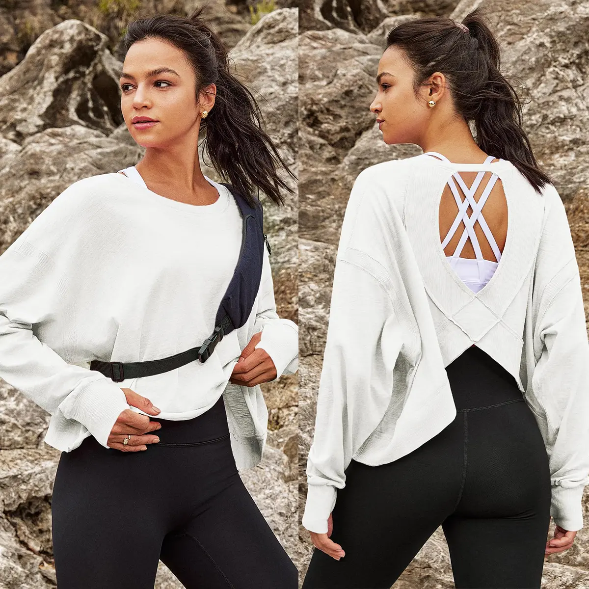 More than a workout top, it’s a style piece! The on-trend open-back adds subtle elegance, while the relaxed fit keeps you comfy (no bagginess). It also has a timeless round neckline (easy to layer), a slight crop for waist flattery, and ribbed cuffs for polish—all for a cute look.