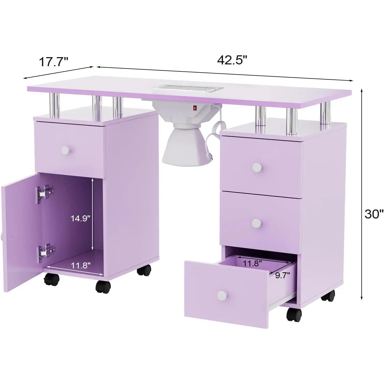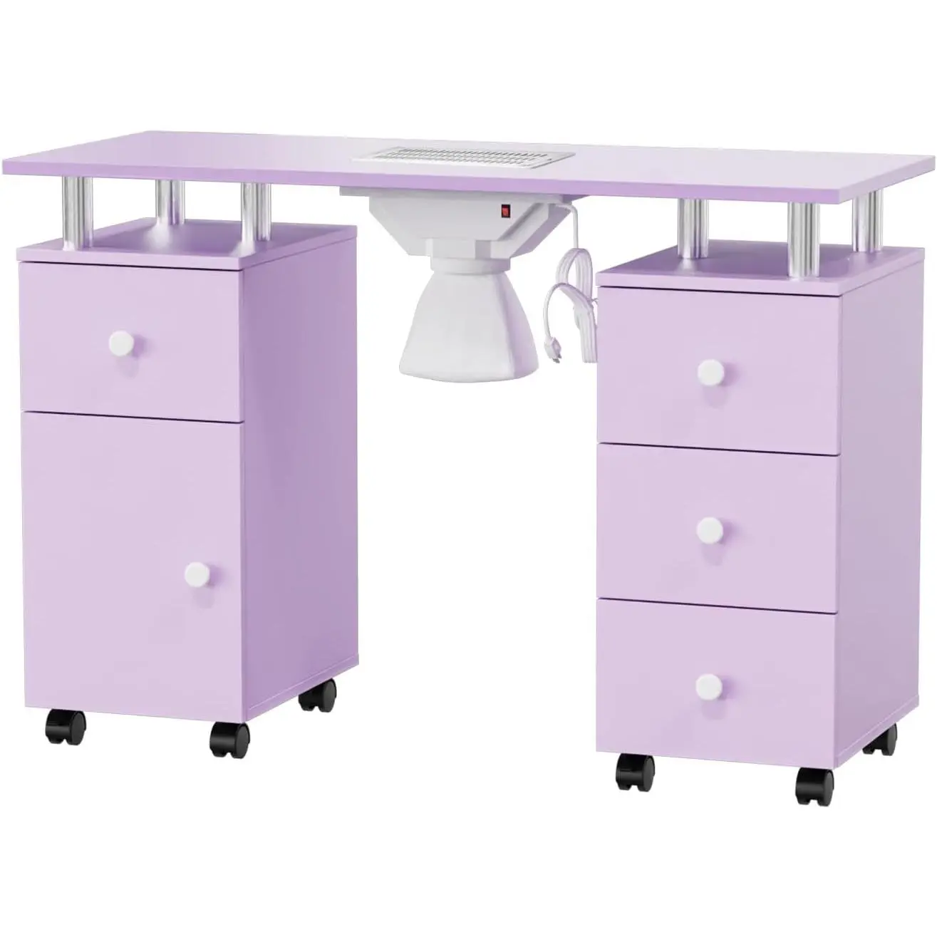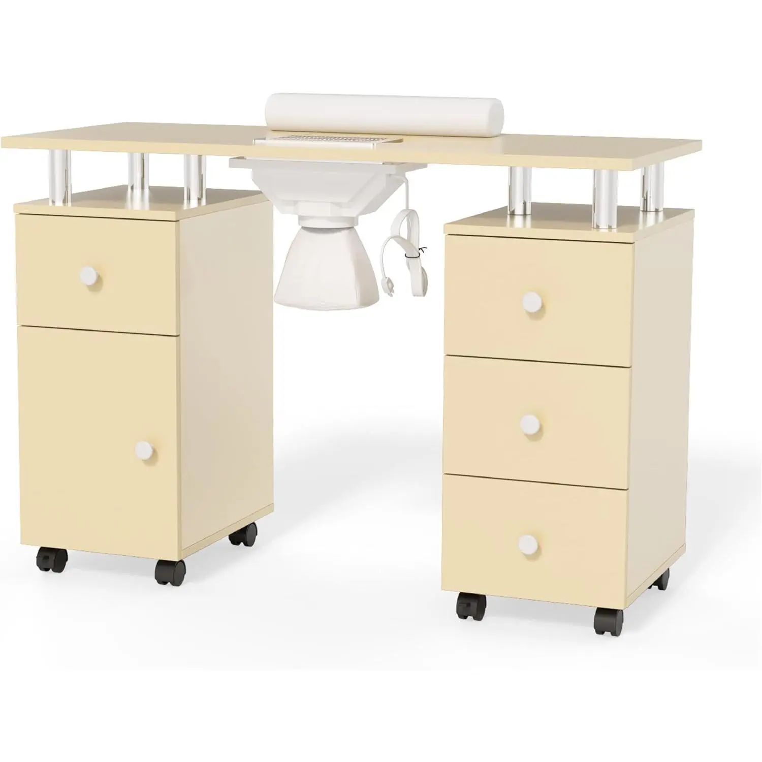 【MOVABLE & LOCKABLE NAIL TABLE】- The manicure table is designed with 8 rolling wheels, you can easily move it from one place to another. Besides, 4 of the wheels are lockable to enhance the stability of the table. You just press the button on the wheel and the table will stay where you want it to be.
