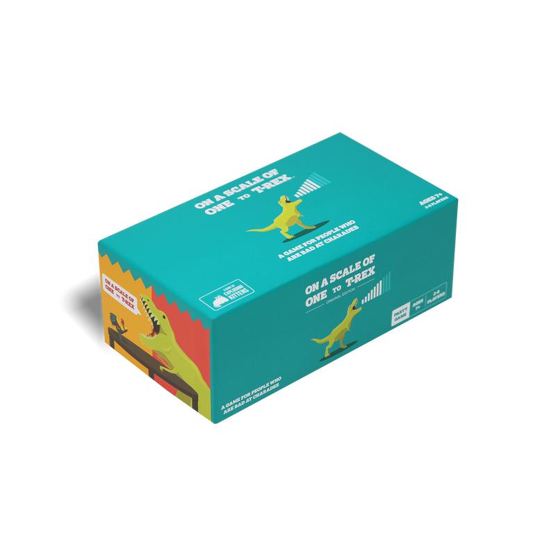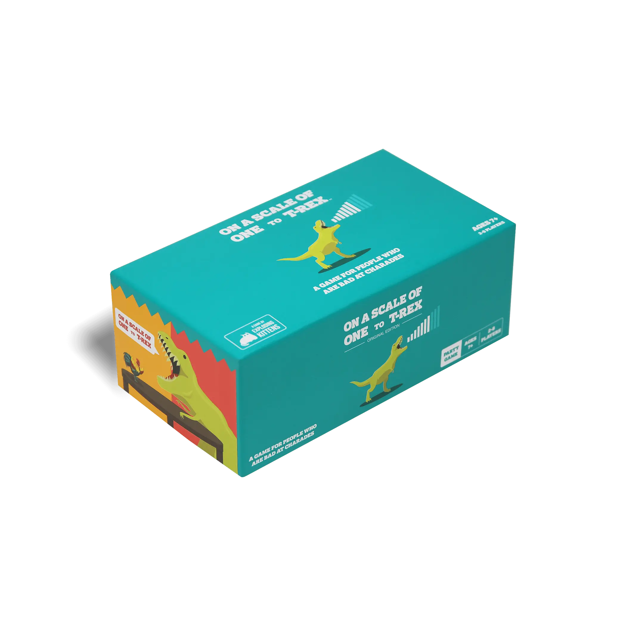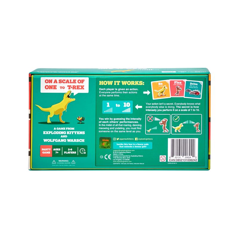 In On a Scale of 1 to T-Rex, players perform hilarious actions—roaring, yodeling, dancing, and more—but the twist is that it’s not about doing it well. Instead, the goal is to perform your action at a secret intensity level, from 1 (barely trying) to 10 (all-out ridiculous).