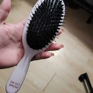 The On Set Pro Brush is a must-have. Brush through curls to create gorgeous old Hollywood waves or a sleek, smooth ponytail.  With its combination of nylon and vegan boar bristles, it is smooth to the scalp and easy to use!