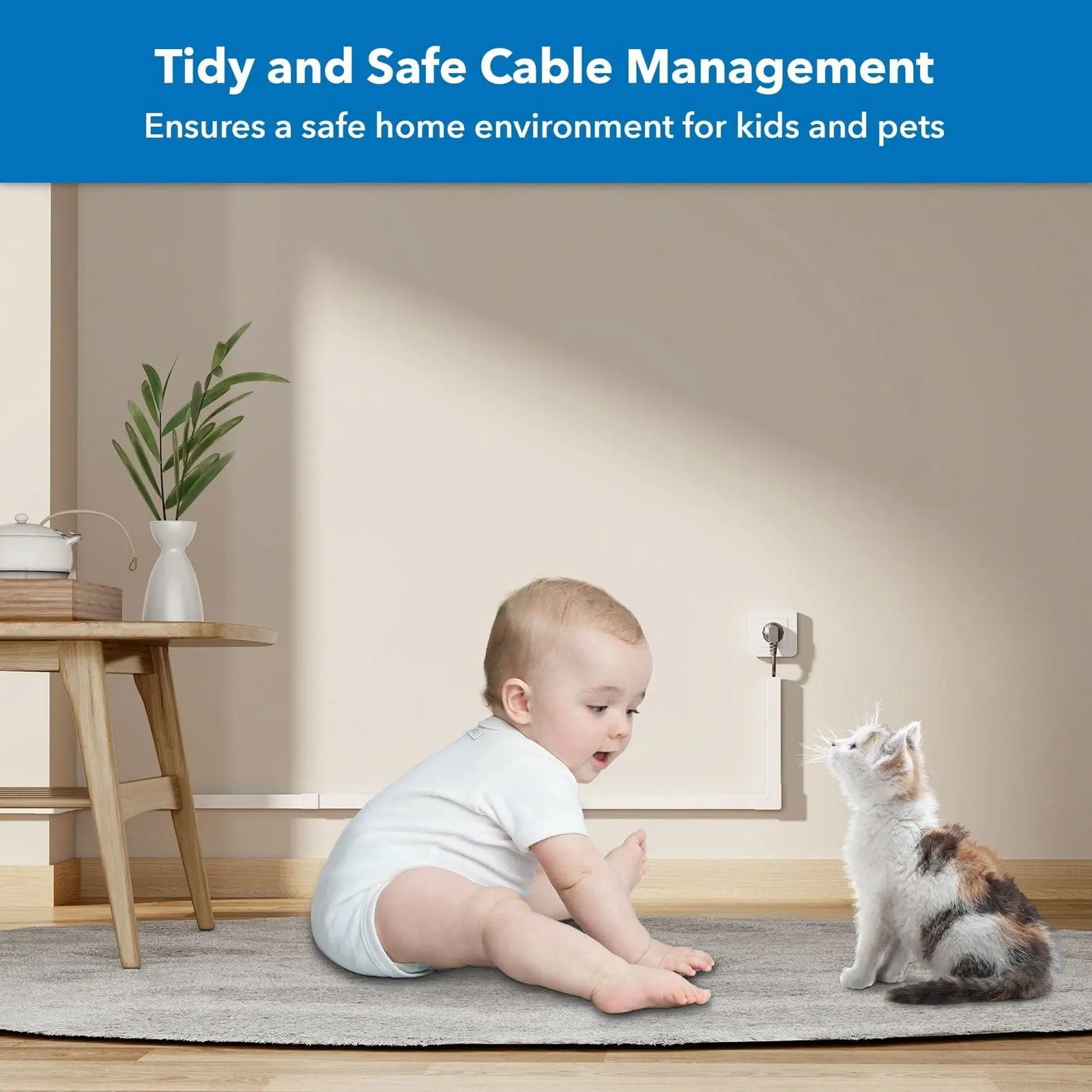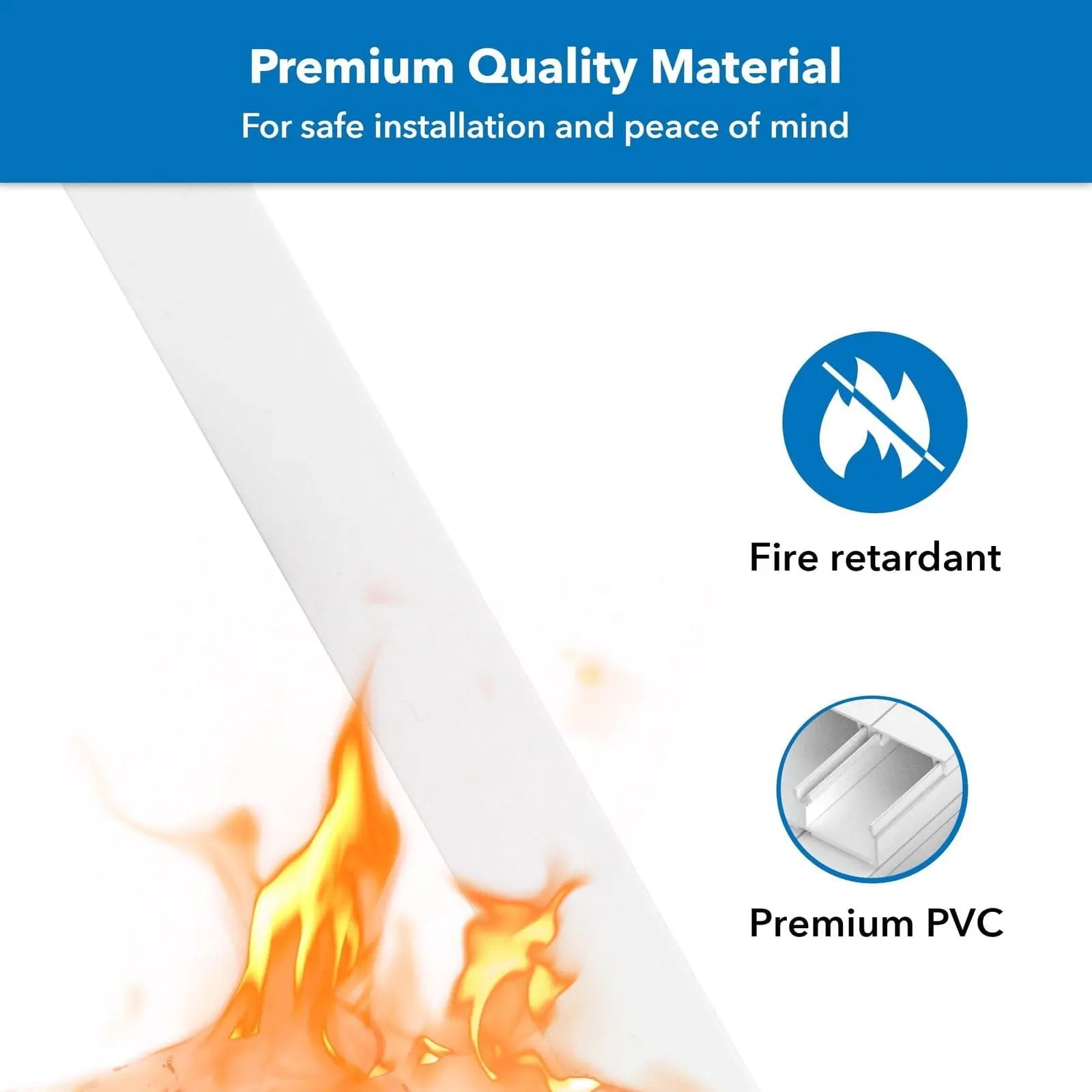 Tired of unsightly cords and cables ruining the sleek look of your wall-mounted TV? Say goodbye to the clutter with our On-Wall TV Cable Concealer Kit. It allows you to easily conceal and organize your cables, transforming the visual appeal of your entertainment space. No more distractions or eyesores – just a clean, seamless finish that complements your décor. Designed for versatility, our cable concealer kit is not limited to hiding cables underneath your TV. You can effortlessly route them along door frames and baseboards, maintaining a tidy appearance throughout your living space. The kit comes with 10 cable raceways (each measuring 15.7 inches) and a variety of connectors, providing ample coverage for a sleek and discreet cable management solution. Customization is key, and our raceways can be cut to the desired size to ensure a perfect fit for your unique setup. They are also paintable, allowing you to match them seamlessly with your existing décor. The comprehensive kit includes everything you need for a hassle-free installation. Made of high-quality, fire retardant PVC (Certified to meet the requirements of UL-94, V-0).