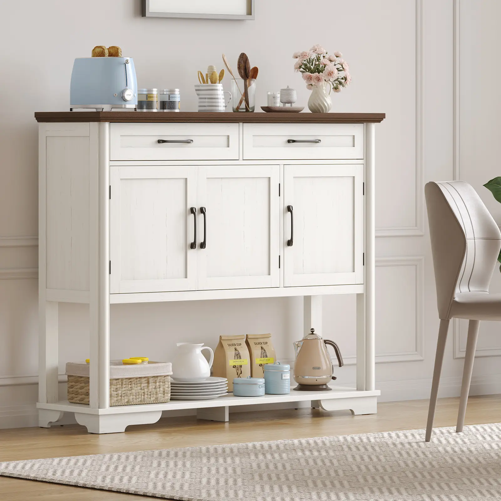 ·Spacious Storage Solution: Featuring 3 doors and 2 drawers, this classic style sideboard offers generous storage options, allowing you to organize and display your essentials seamlessly.