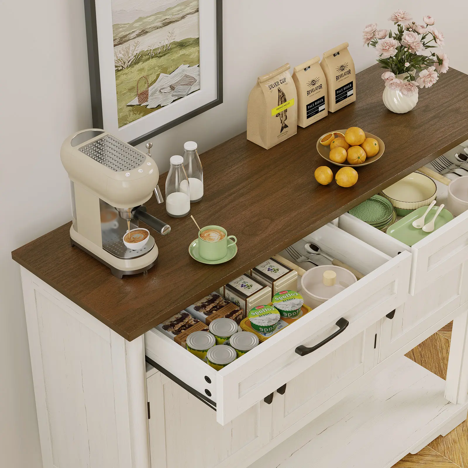 ·Versatile Multi-Purpose Use: Ideal for various settings, this sideboard effectively serves as a practical solution for entryways, dining spaces, or living rooms, meeting all your storage needs with elegance.
