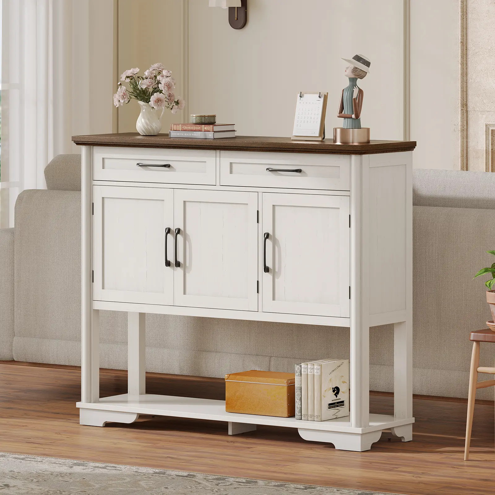 ·Elegant Vintage Design: The sophisticated retro color palette of this sideboard enhances any interior décor, making it a stylish addition to your hallway, living room, or dining area.