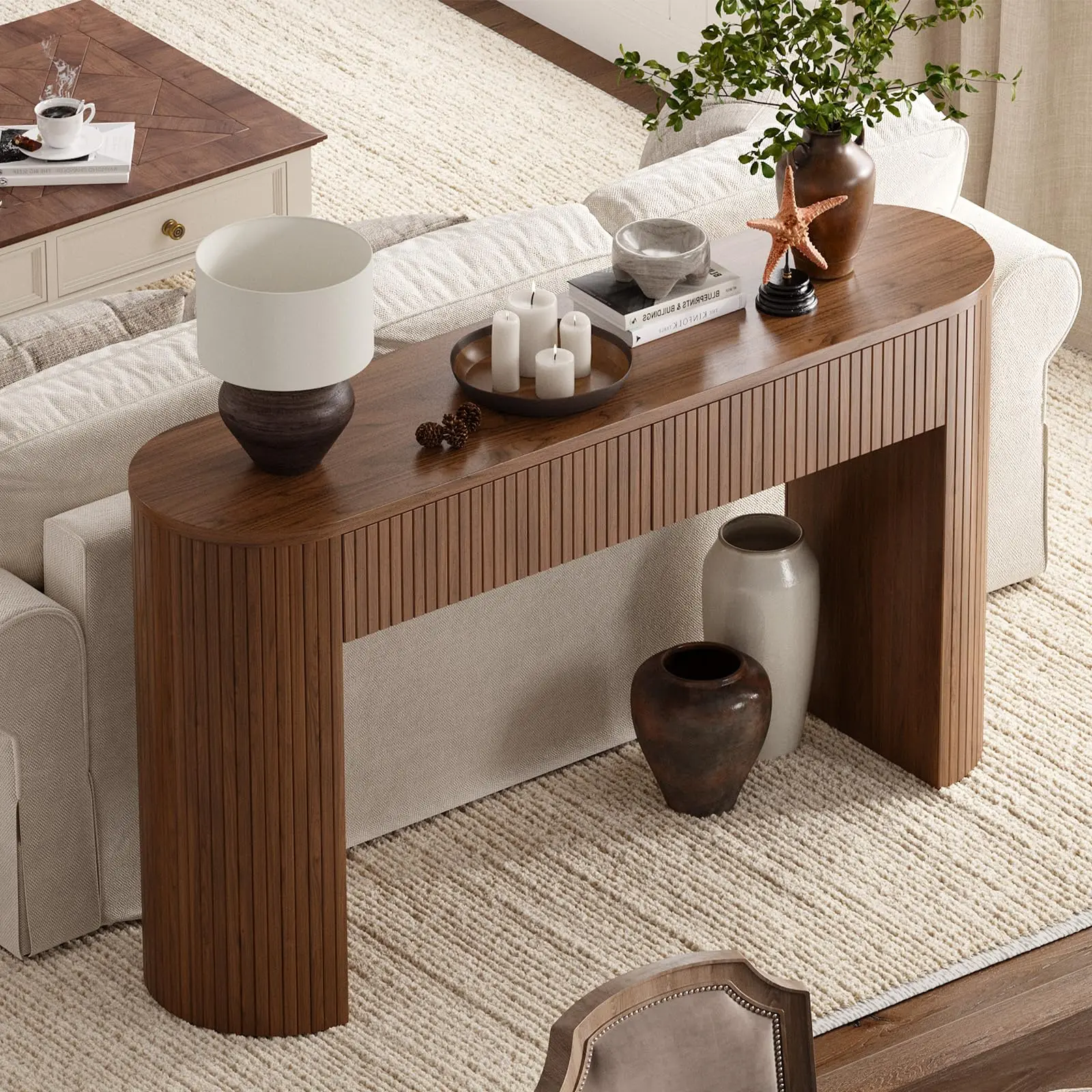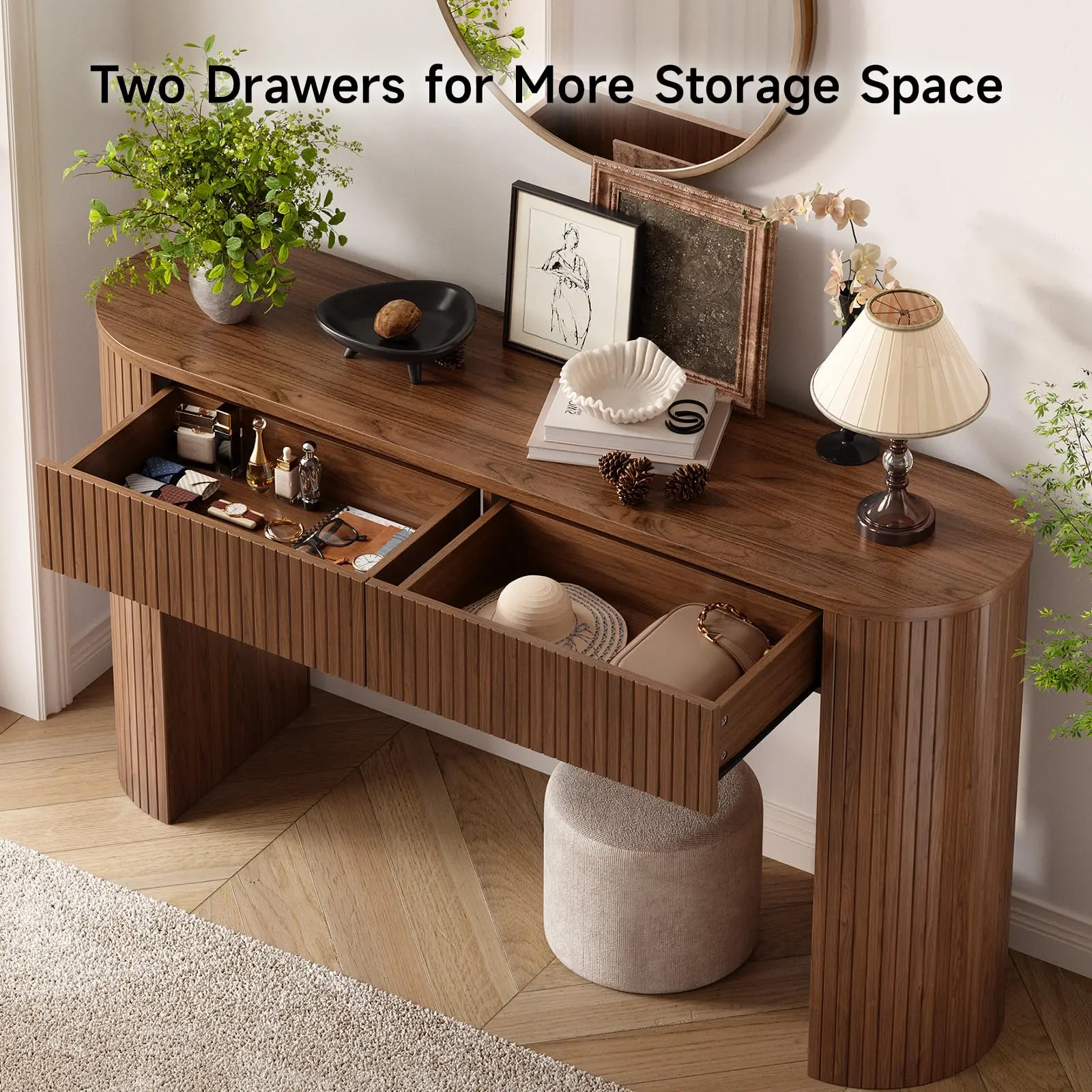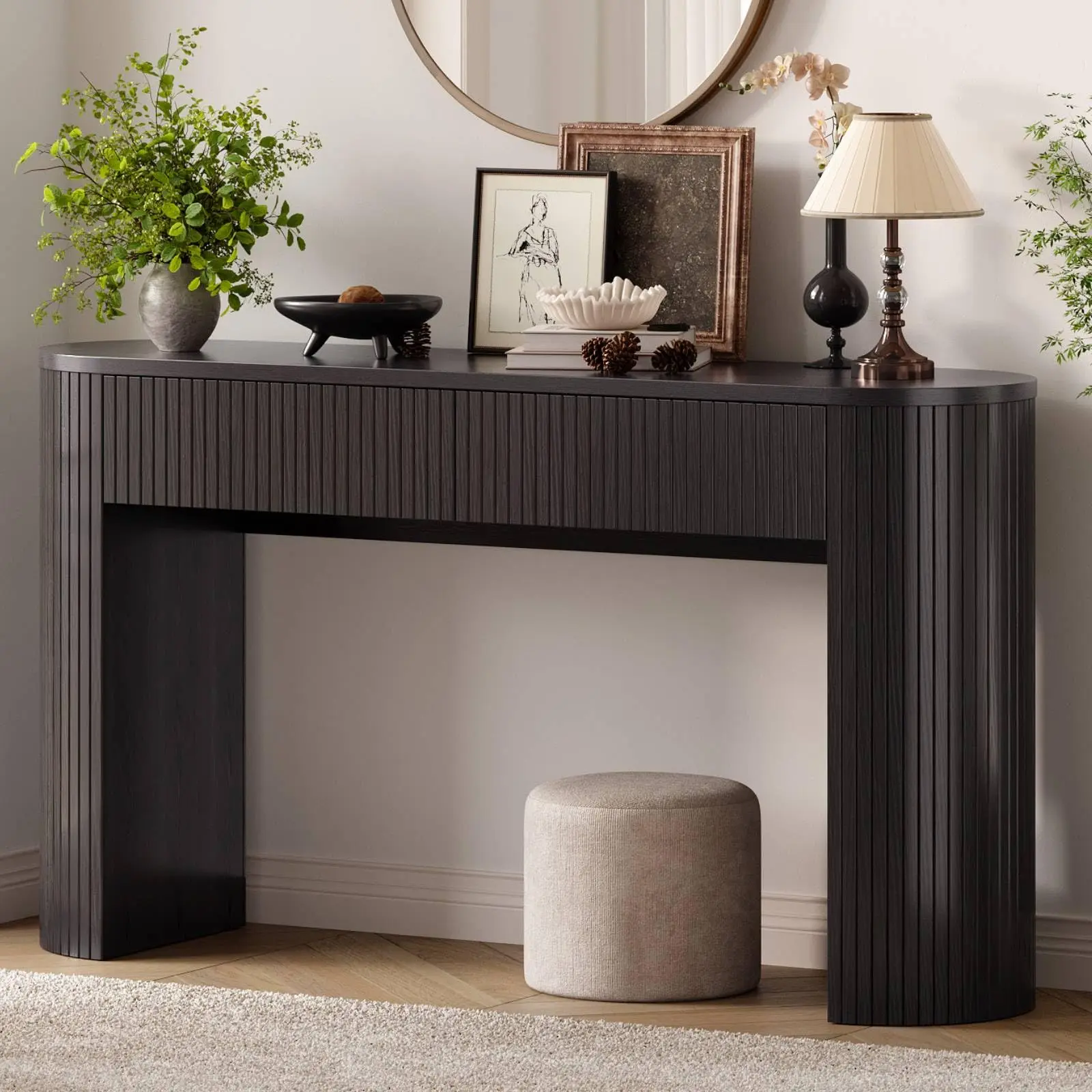 ·Mid-century Modern Design: The fluted console table is simple yet stylish and will harmonise with any home style. The 55" console table with drawers solves the problem of having nowhere to put your belongings in the entryway, not only for storage, but also to create a unique view of the entryway