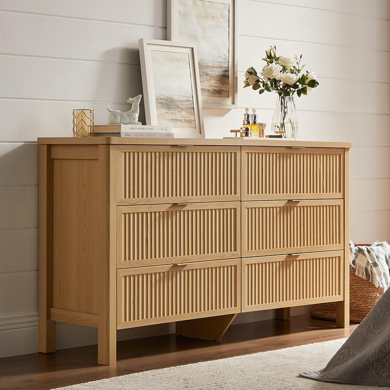 ·Stable Chest of Drawers: Wooden frame construction and solid wood legs make this 6 drawer dresser for bedroom more stable and will not deform after several years. Notably, the cabinet's stability is reinforced by the innovative inclusion of a steel support at the base and wall-lock device, ideal for home