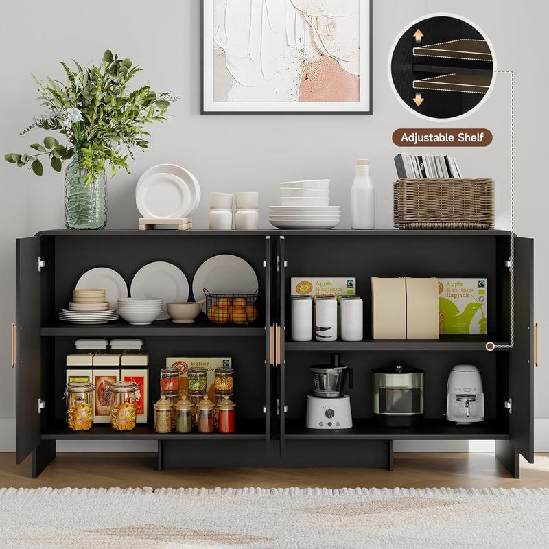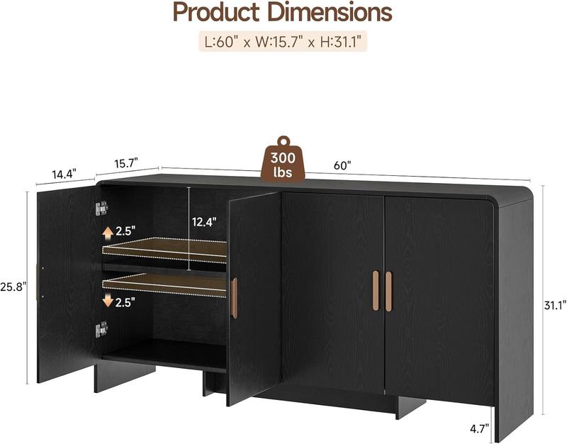 ·Surprisingly Spacious: The 60-inch buffet cabinet offers ample room to stow your essentials, while the adjustable shelves let you customize the interior layout to fit items of all sizes