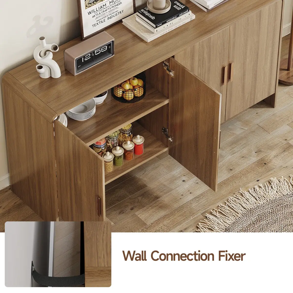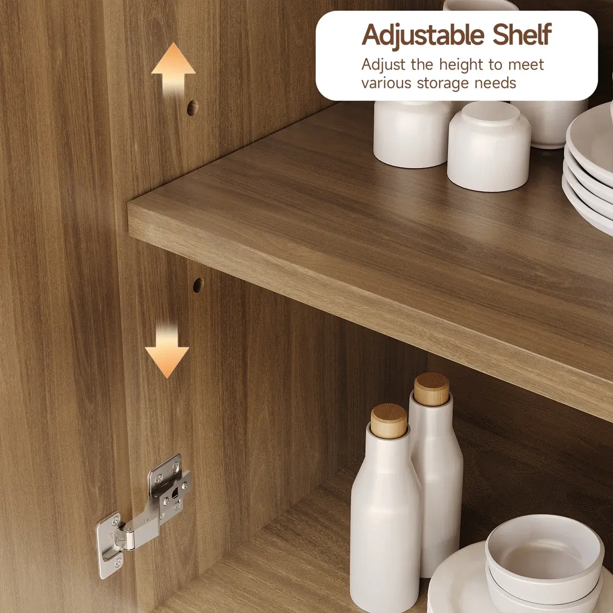 ·Surprisingly Spacious: The 60-inch buffet cabinet offers ample room to stow your essentials, while the adjustable shelves let you customize the interior layout to fit items of all sizes
