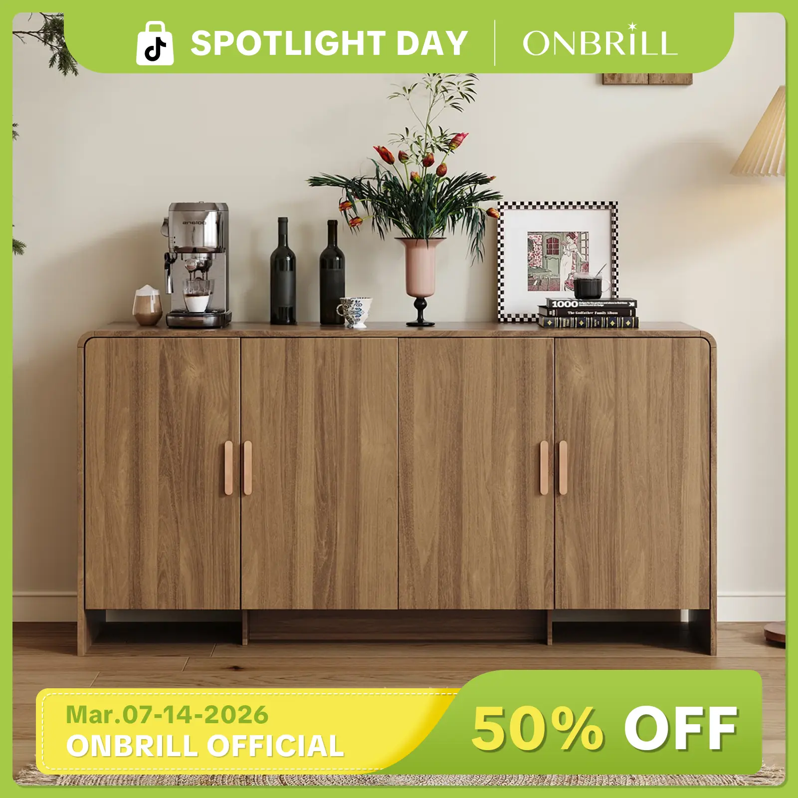·Upgraded Material & Structure: ONBRILL sideboard buffet cabinet is made of high-quality artificial wood, and an I-shaped reinforced wood board is added to the bottom, which makes the cabinet more sturdy and durable to avoid deformation.