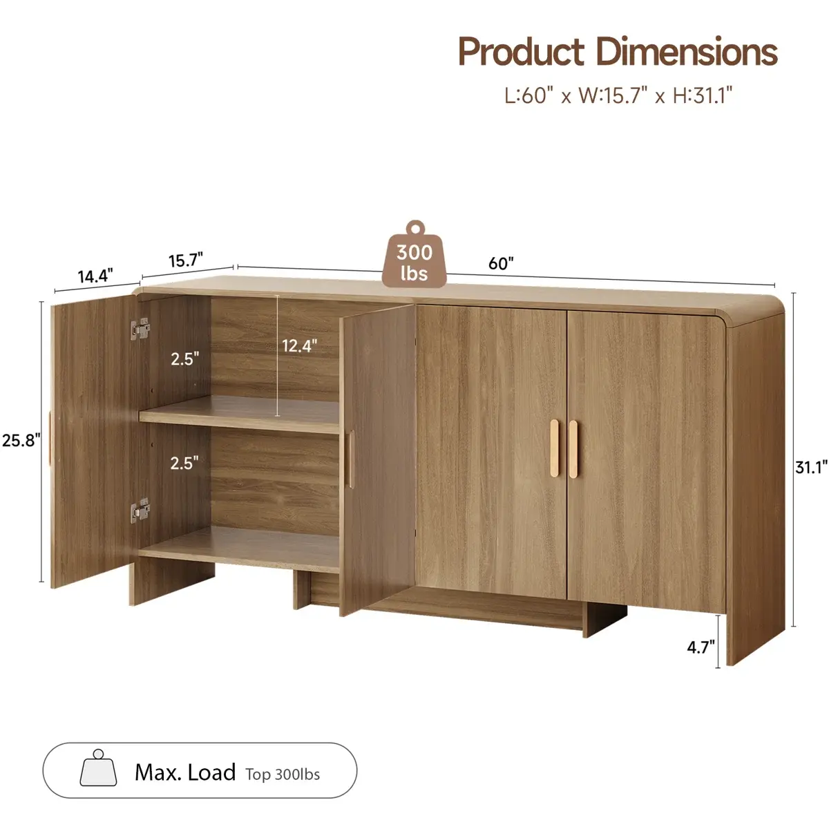·Dual-Size Solution: Available in both 31.5-inch and 60-inch widths, this storage cabinet is versatile enough to fit your dining room, living room, hallway