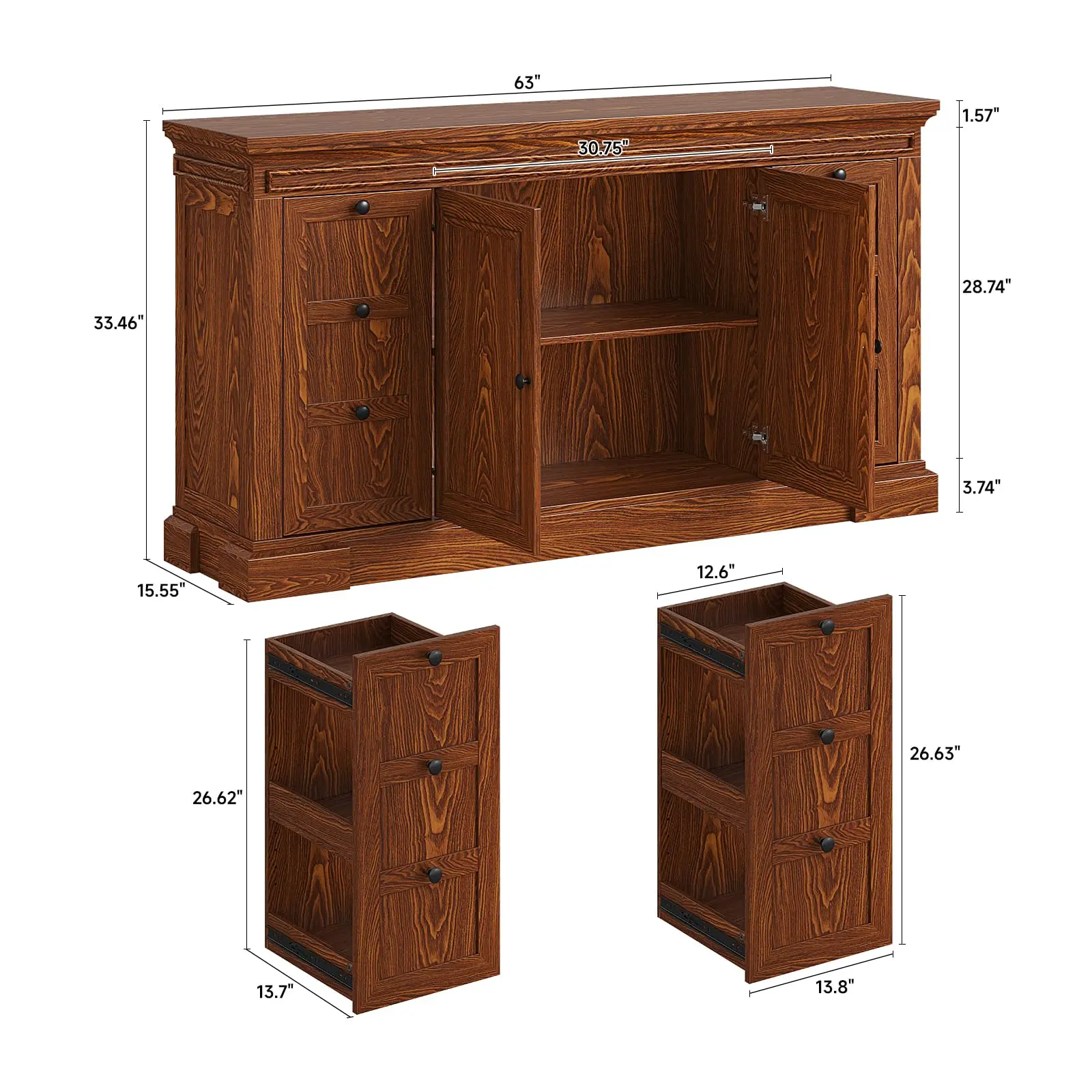 ·Large & Sturdy Storage: 63”W x 15.5”D x 33.4”H with six drawers, two doors, and a 250 lb weight-bearing top.