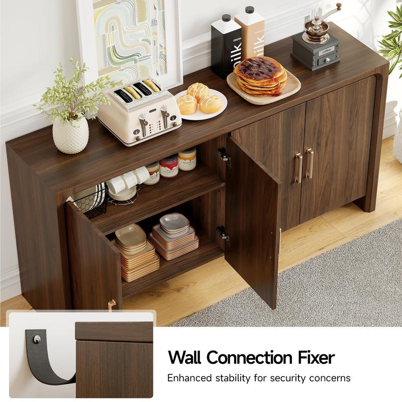 ·STURDY AND DURABLE: This buffet cabinet is crafted with high-quality materials, guaranteeing durability and longevity. The bottom middle Legs effectively ensure robust stability and weight capacity. The wall connection fixer is included to secure this buffet storage cabinet to the back of the wall for security concerns