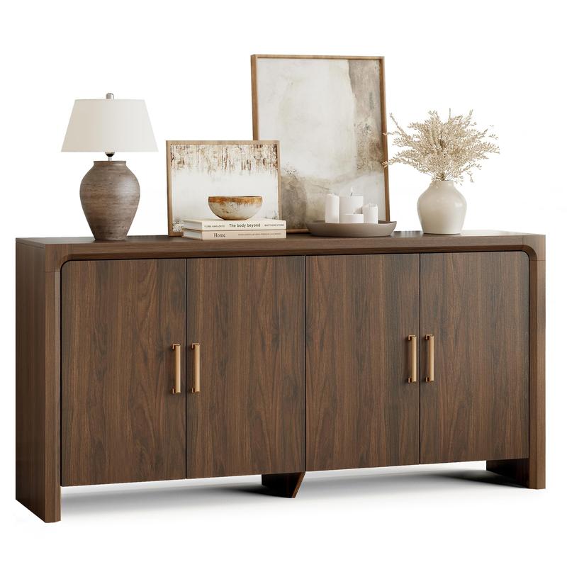 【Valentine's Day gift】ONBRILL 63" Buffet Cabinet with 4 Doors and Adjustable Shelves, Sideboard Buffet Cabinet with Storage, Wood Kitchen Console Table, Modern Coffee Bar for Kitchen, Living Room, Hallway