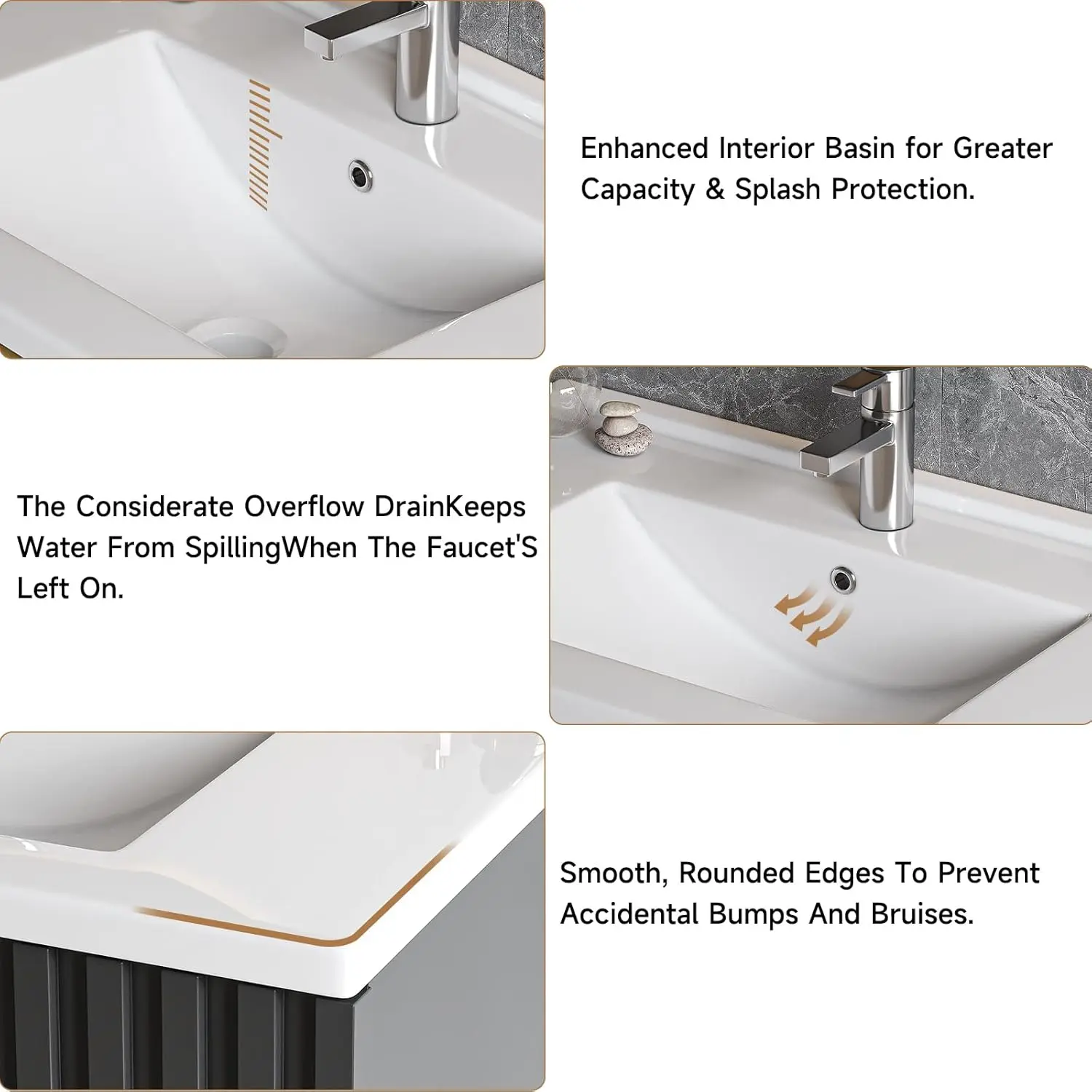 ·【Stable Bathroom Storage Cabinet】This bathroom vanity comprising MDF and integrated ceramic sink, with exceptional strength and stability. The bathroom cabinet with paint surface, which can be used in the bathroom for a long time, no need to worry about expansion problem. Its durability ensures a long-lasting fixture in your bathroom, ready to serve you for years to come