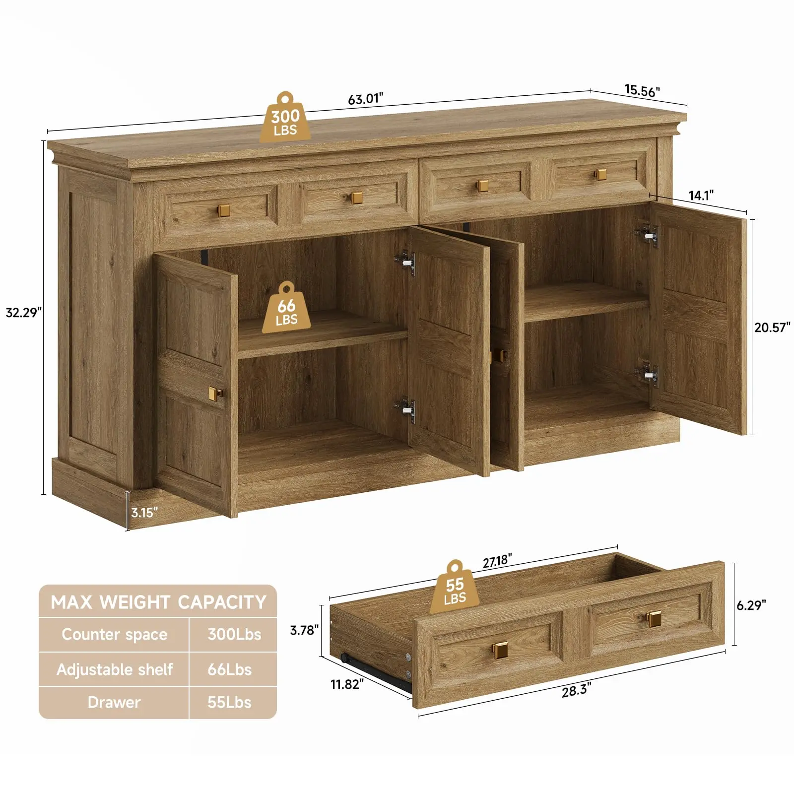 ·Elegant Curved Design: The inner arc line of this sideboard cabinet adds a touch of modern sophistication, seamlessly blending with various home decors while maximizing aesthetic appeal.