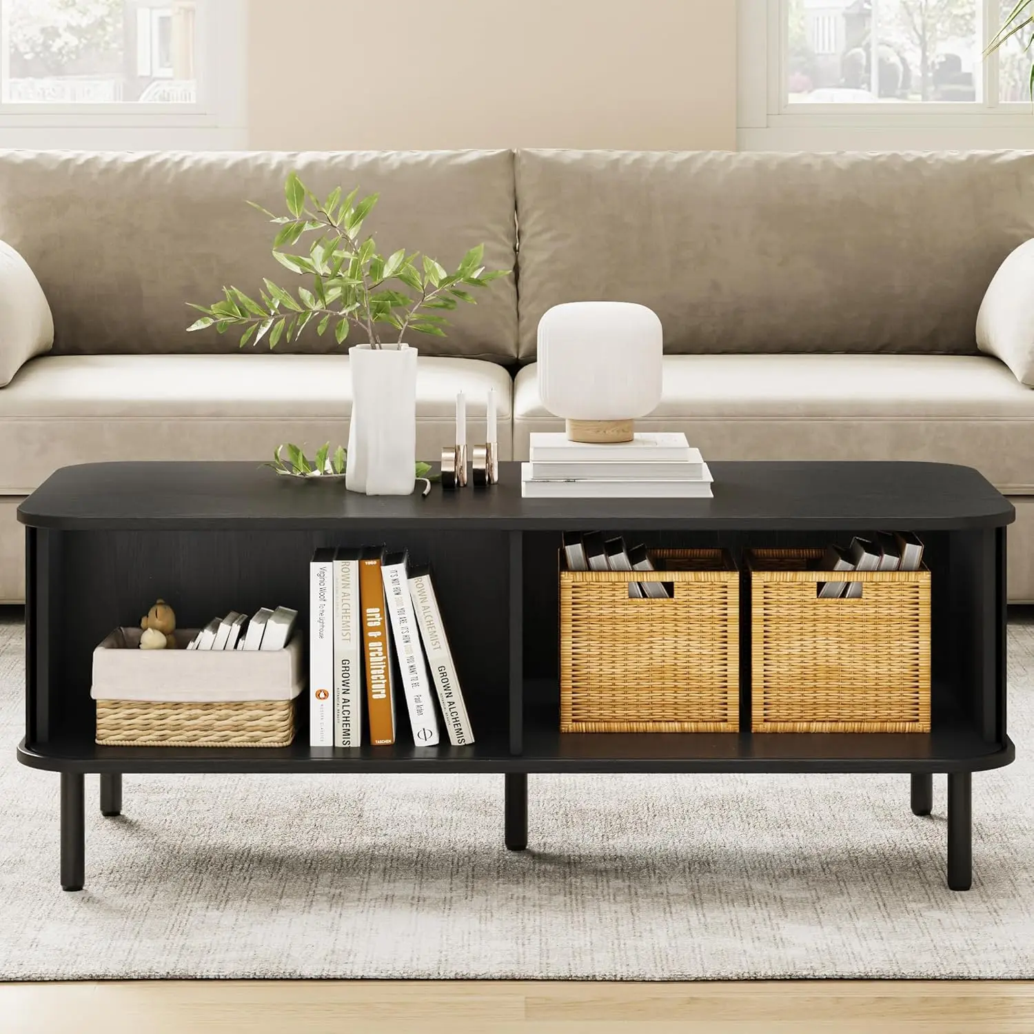 ·Ample Storage Space: This coffee table with storage has two spacious storage compartments, allowing you to easily store magazines, books or other daily items, which is practical and space-saving.
