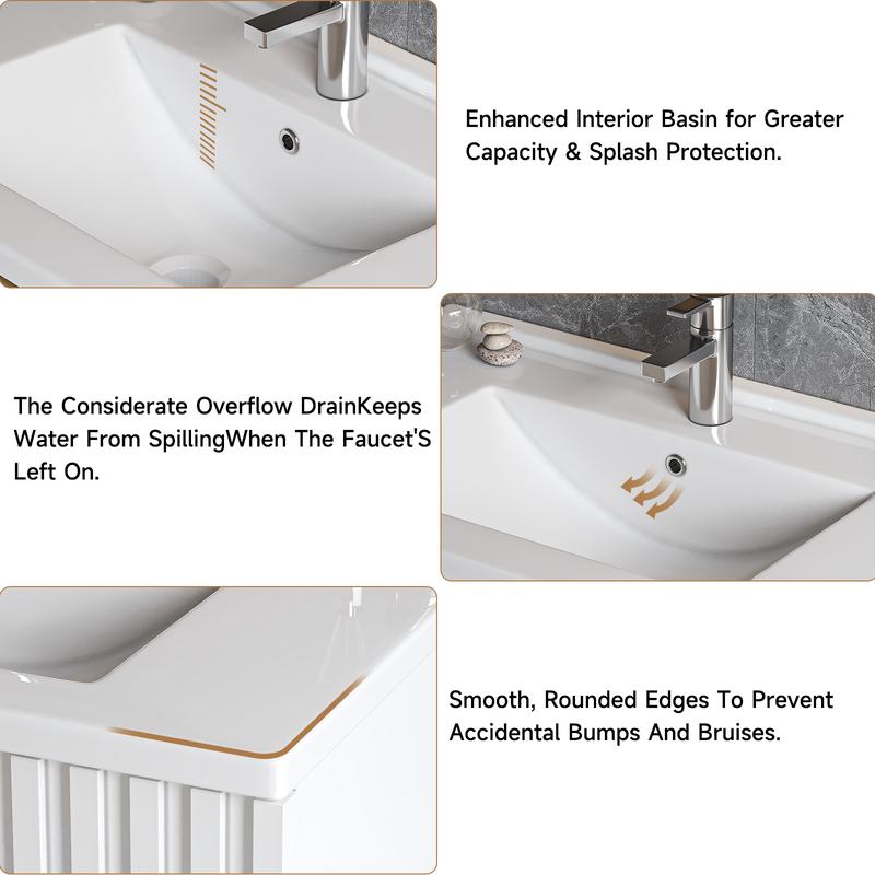 【Bathroom Vanity with Ceramic Integrated Sink】Wall-mounted bathroom vanity with sink combo, this sink boasts can effectively resist impact. properties, significantly reducing the risk of damage during transportation. High end material ensures bathroom vanity with sink no risk of cracking, even under heavy impact, ensuring a long lifespan and reliable performance
