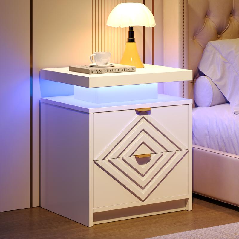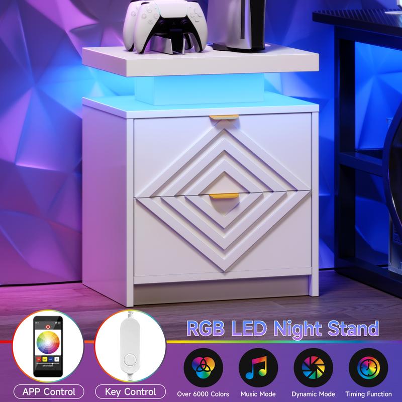 ·【Nightstand with LED Lights】: LED Light is with multi-variable RGB colors, you can choose the light and mode(static, flashing, jump, and fade) according to needs and scenes. Controlled by manual key or phone app, very interesting and convenient