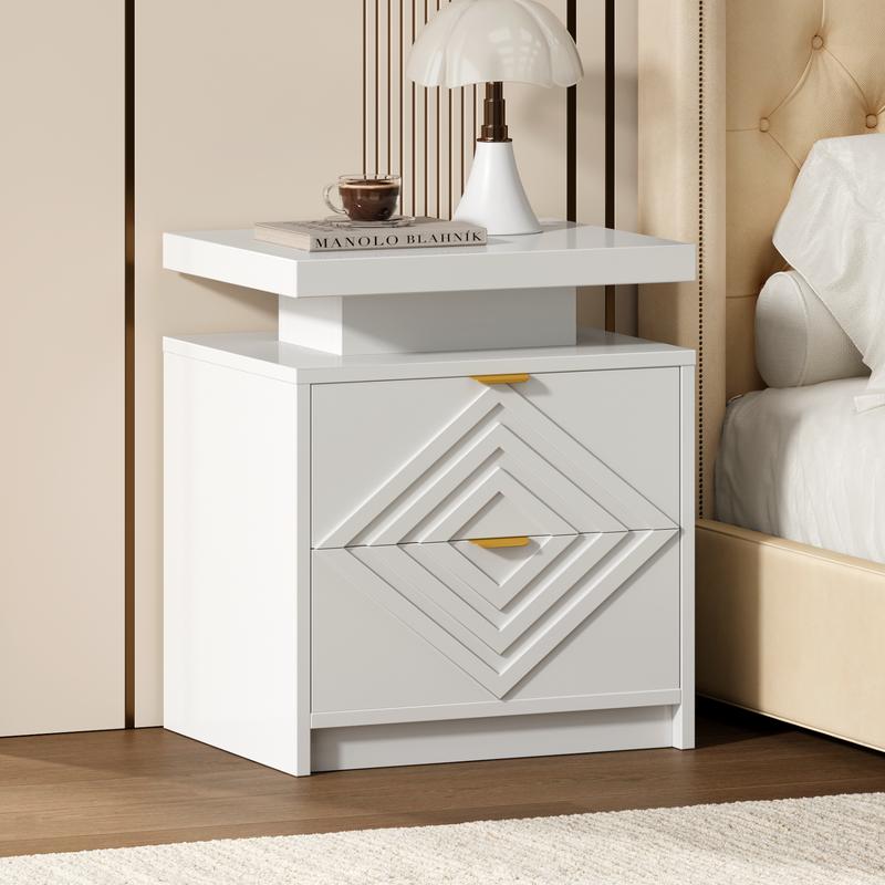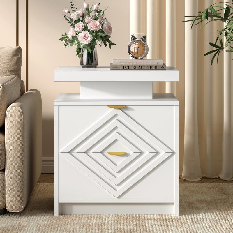 ·【Ample storage space】: The modern nightstand has 2 drawers and a small open shelf. The large capacity of the drawer can offer plenty of space for organizing small items, and the open space is convenient for daily use, suitable for any room