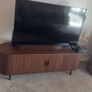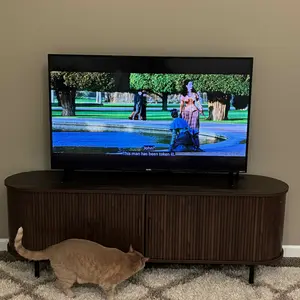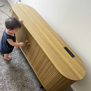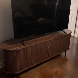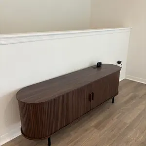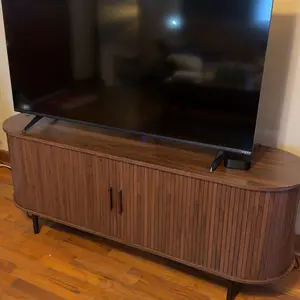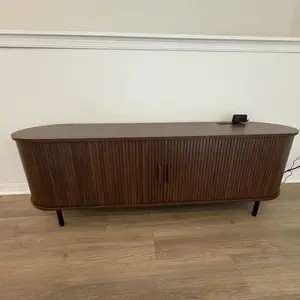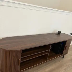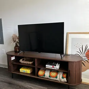 The ComfyCorner TV stand blends mid-century modern design with practical functionality. Featuring fluted details and a built-in power outlet, this 70.8-inch media console accommodates up to 80-inch TVs while providing organized storage through 8 versatile spaces including drawers and hidden compartments. With adjustable leveling feet and anti-tip hardware, it ensures stability on uneven floors while serving equally well as an entertainment center or entryway cabinet.