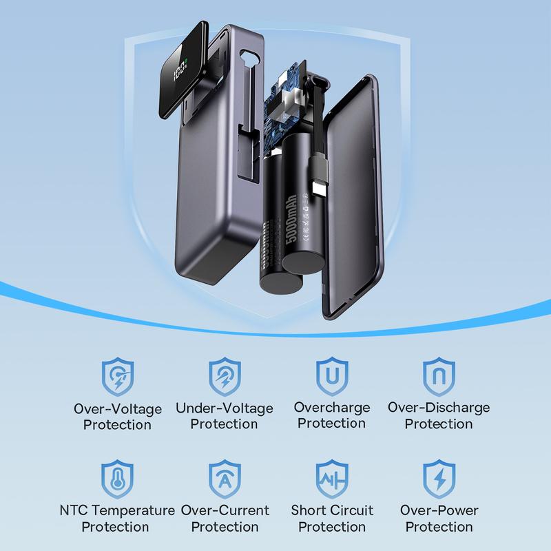 ·Retractable USB-C cable: Built-in 2.13ft (65cm) retractable USB-C cable for grab-and-go charging.