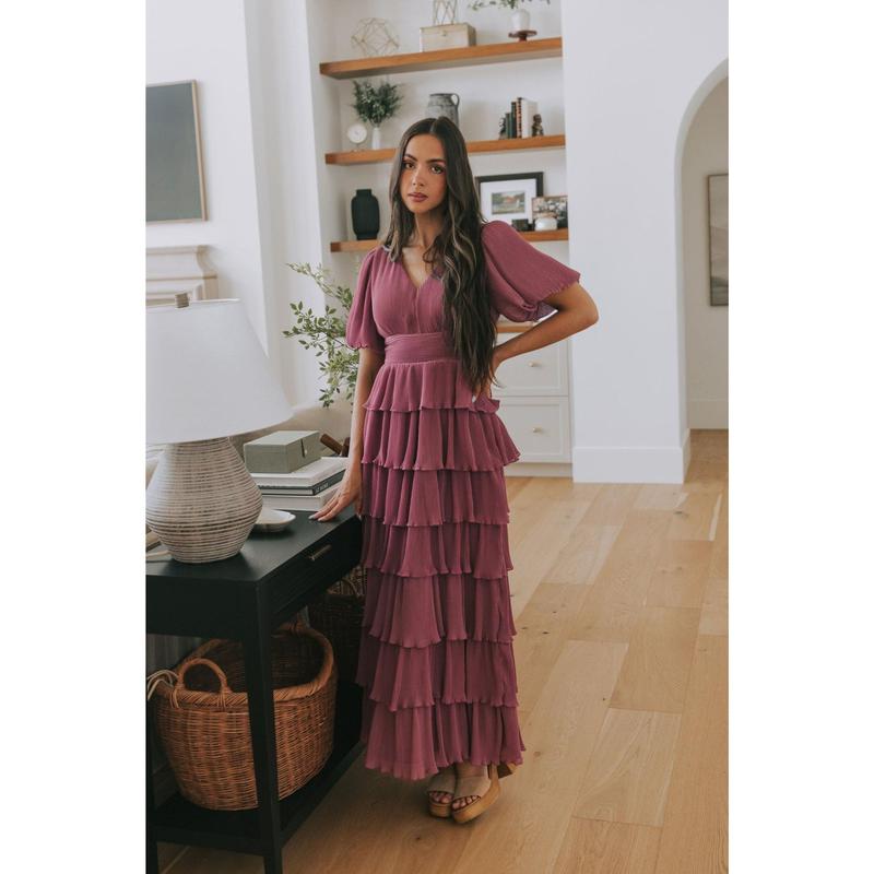 5. EXCLUSIVE - Promise Me This Dress - Short Sleeve Bridesmaid Mother of the Bride Event Dress with V-Neckline Tie Waist & Tiered Skirt 10 Hues, Size Inclusive XXS-6XL