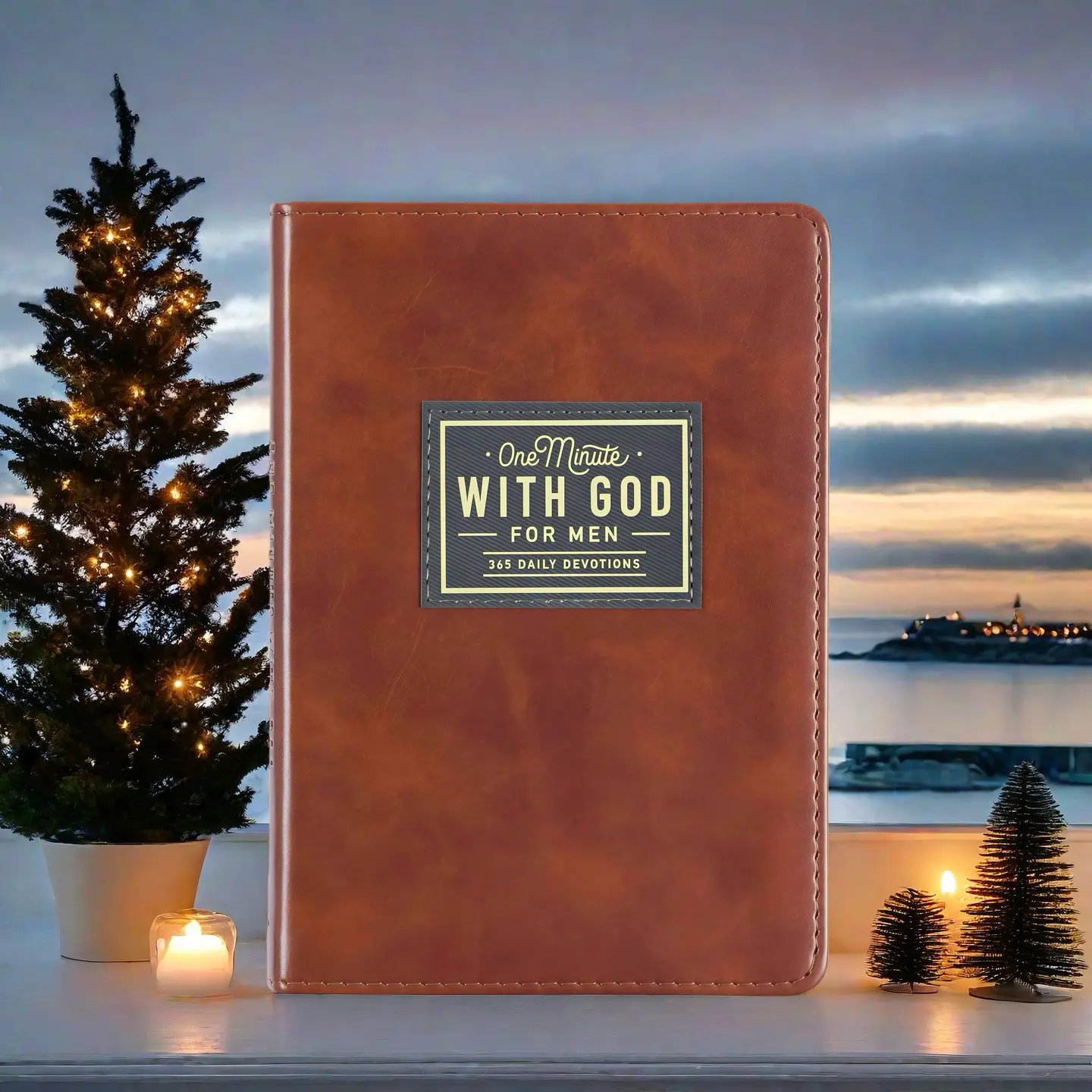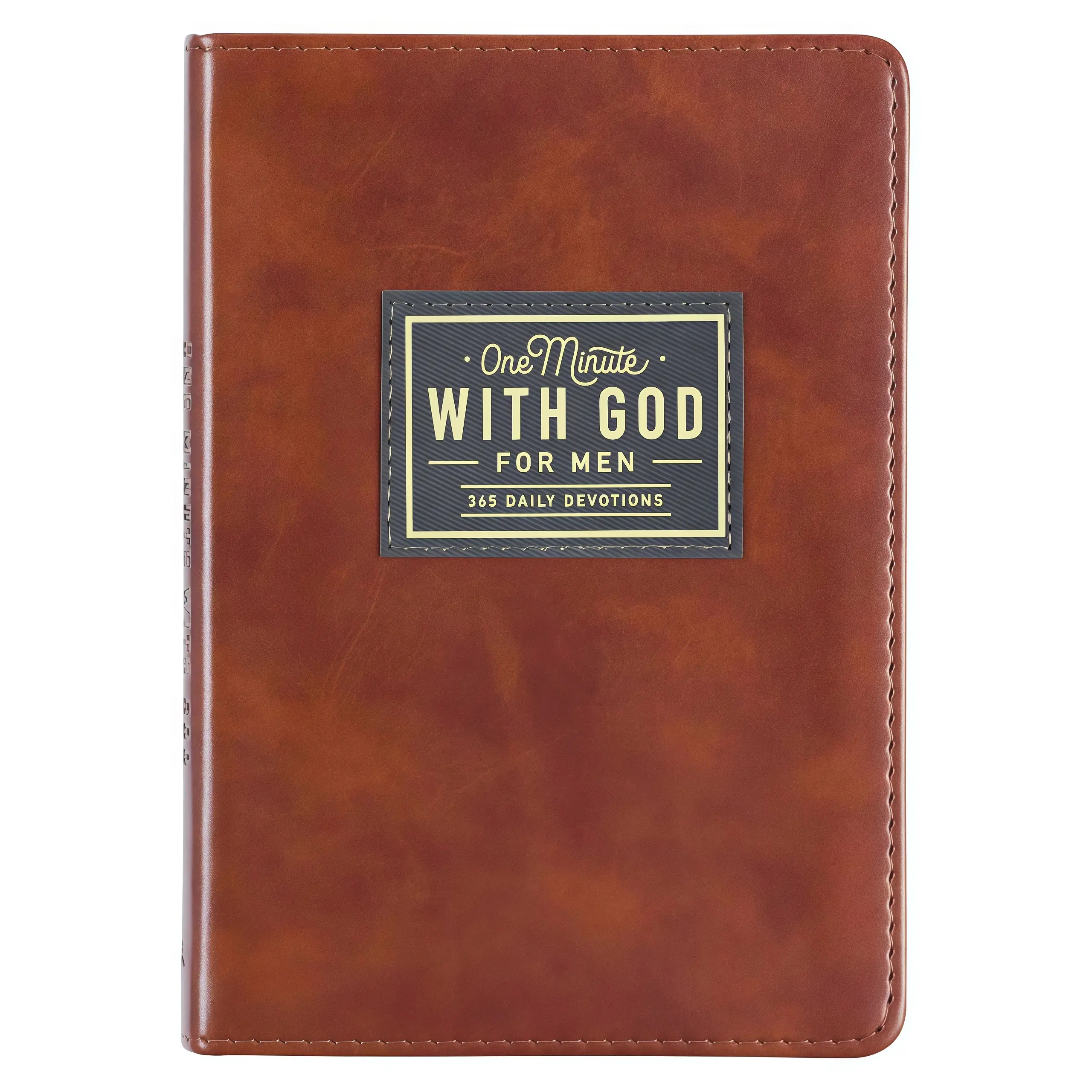 One Minute with God for Men | 365 Devotions in Brown Faux Leather | Daily Faith & Encouragement Journal | Portable 365-Day Reflection Book | Perfect Gift for Christmas, Holidays & New Year for Fathers, Husbands, Sons & Friends