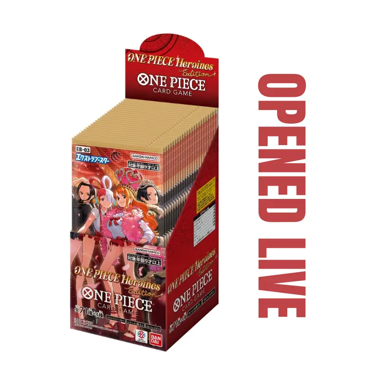 The Japanese One Piece Card Game EB03 Heroines Edition Booster Box celebrates the strength and spirit of female characters in the One Piece universe, offering unique and powerful cards centered on iconic heroines. This edition includes 24 booster packs, with each pack containing 6 cards, to deliver an elegant yet potent lineup of characters like Nami, Nico Robin, Boa Hancock, and more.