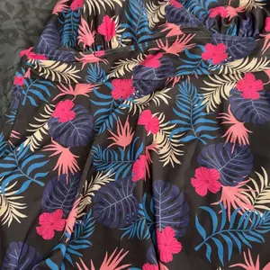With a blue-purple background color and pink and blue flower and leaf prints, the colors are vivid and full of tropical style, full of vitality and romantic atmosphere.