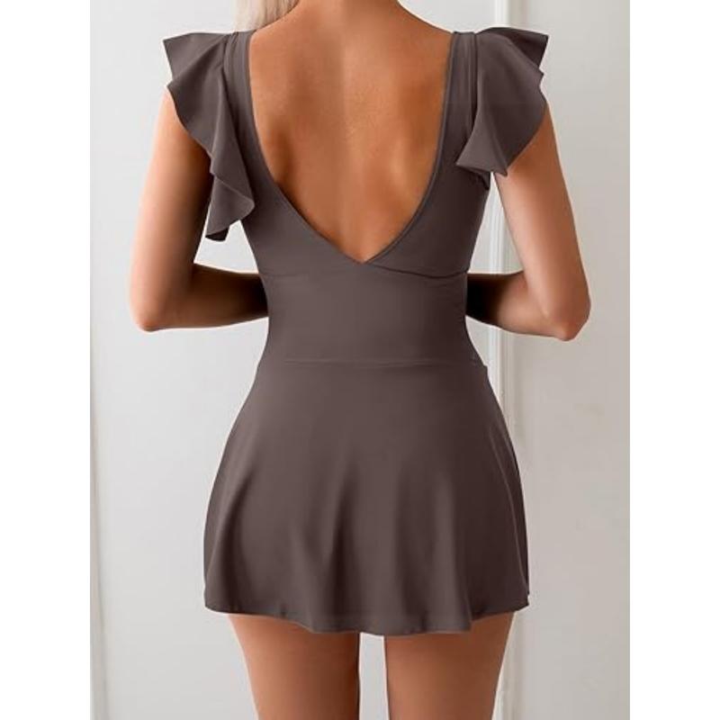 ·Features:Women's swimsuit features ruffled sleeves, wrap V-neckline, criss cross, non-removable padded, front ruching detail for tummy control, and full coverage built-in bottom so you can enjoy the water park without worrying about the skirt floating up