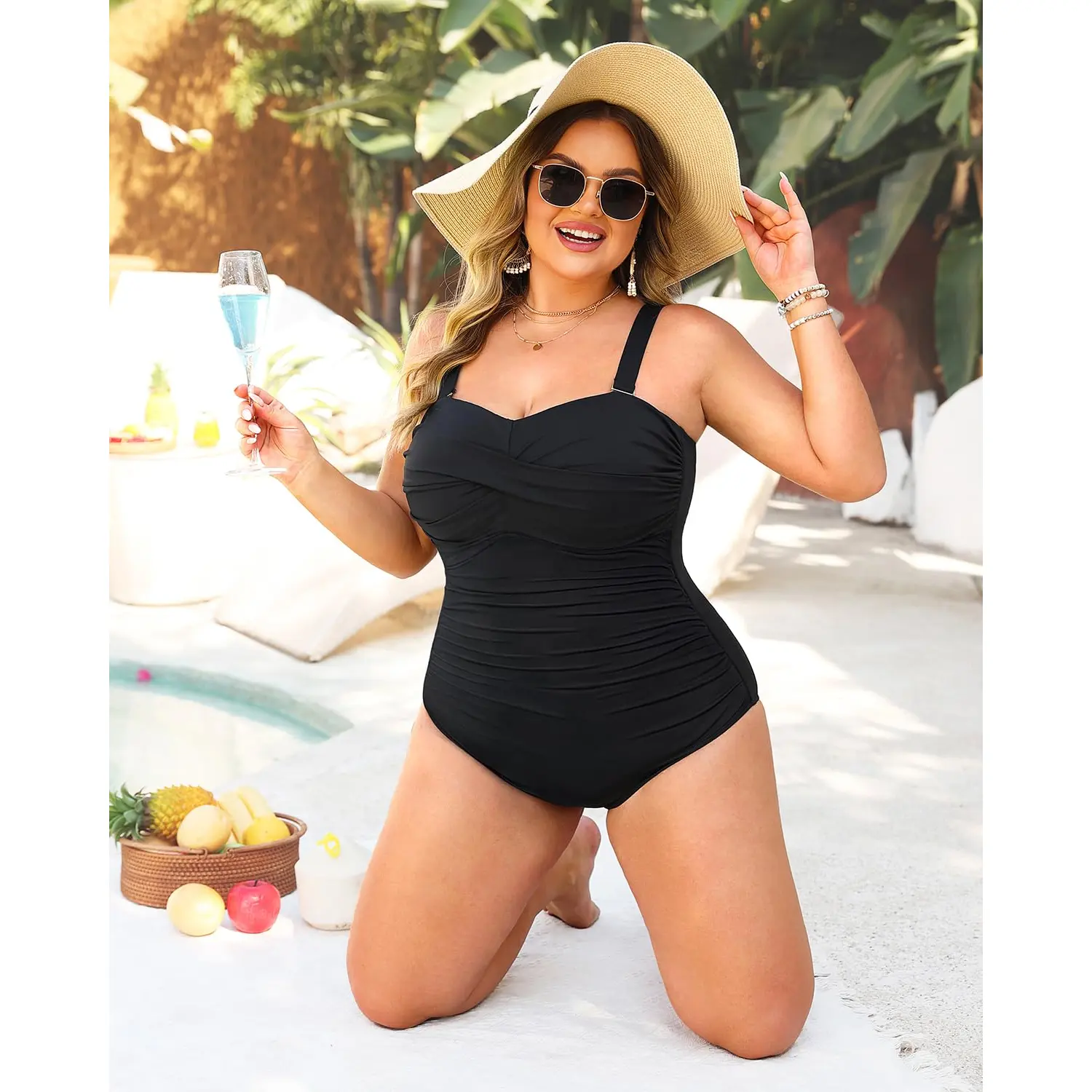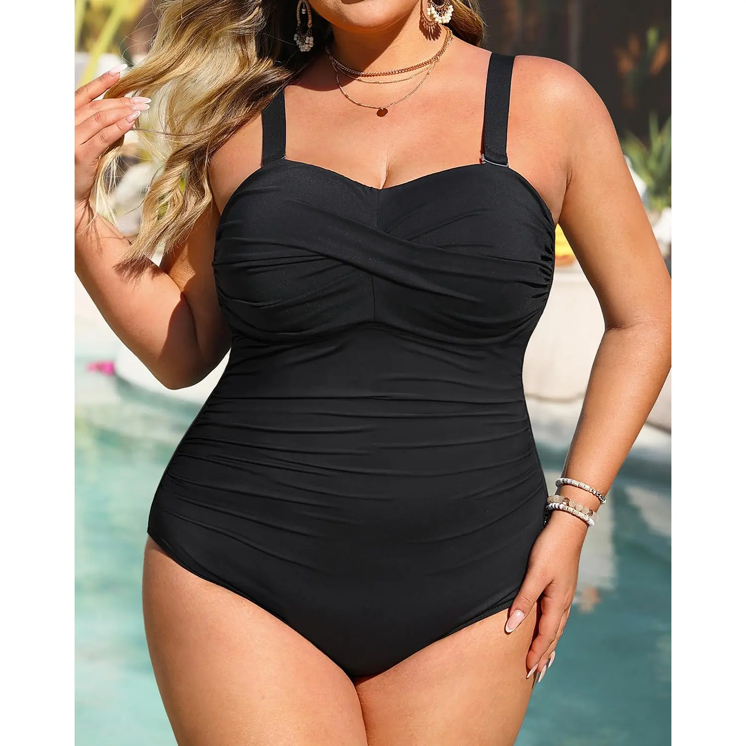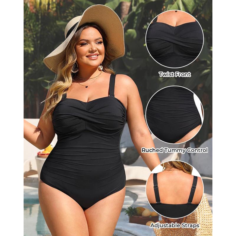 ·Plus Size One-Piece Swimsuit: This retro-inspired bathing suit features a sweetheart neckline and a twist-front design that accentuates your shoulders and neckline, giving you a chic and fashionable look.