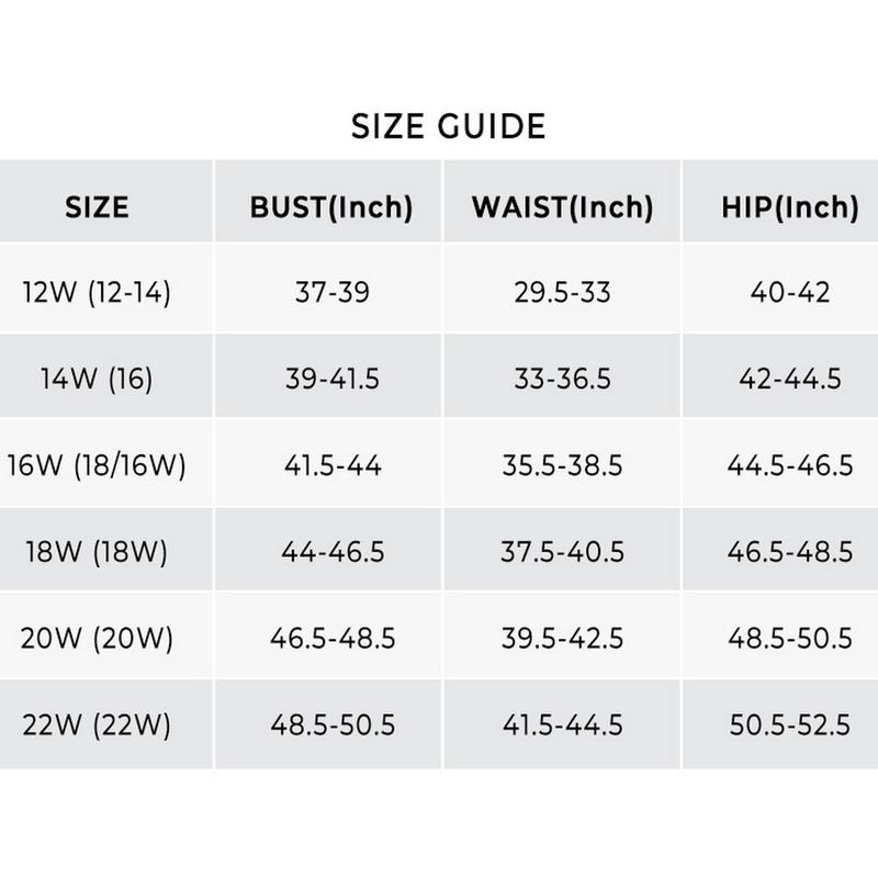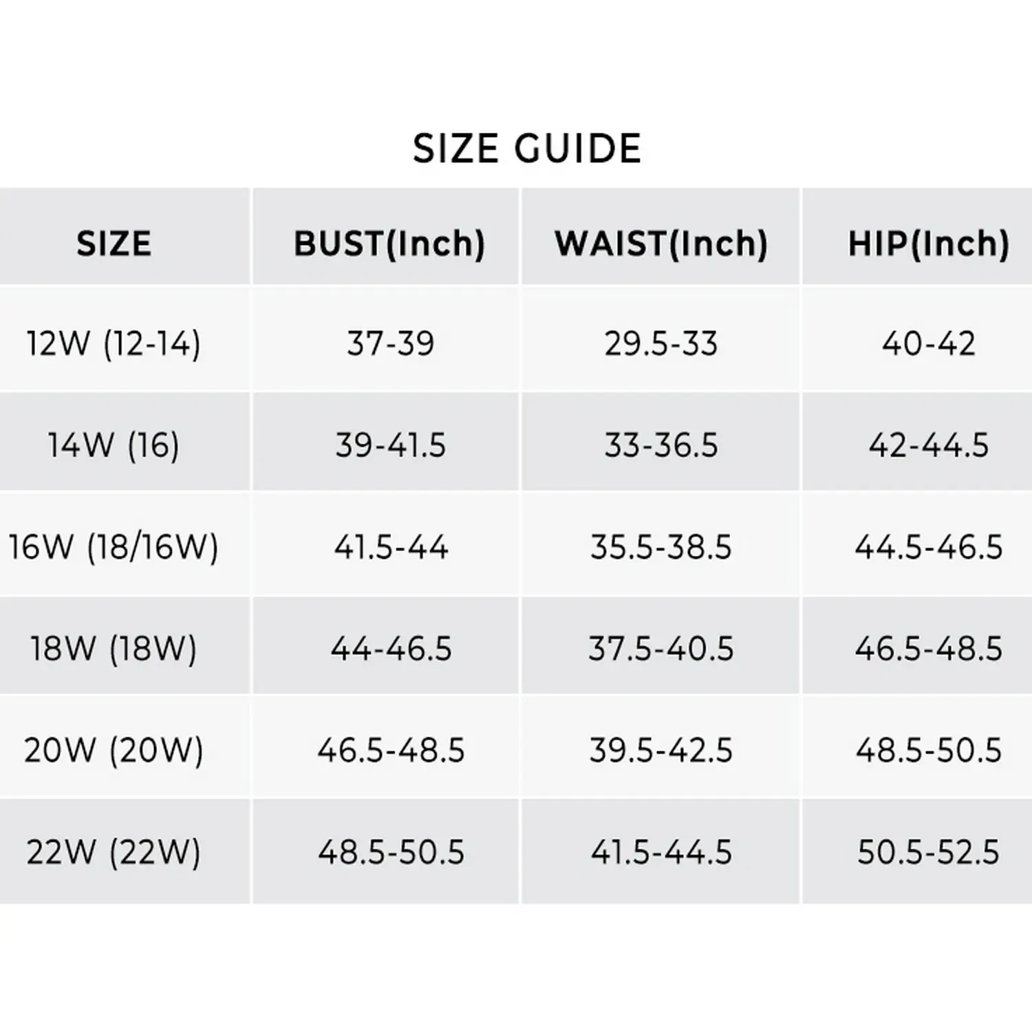 ·Available in Extended Sizes: Choose from a range of sizes to find your perfect fit: 14 Plus (US 14W), 16 Plus (US 16W), 18 Plus (US 18W), 20 Plus (US 20W), 22 Plus (US 22W), and 24 Plus (US 24W).