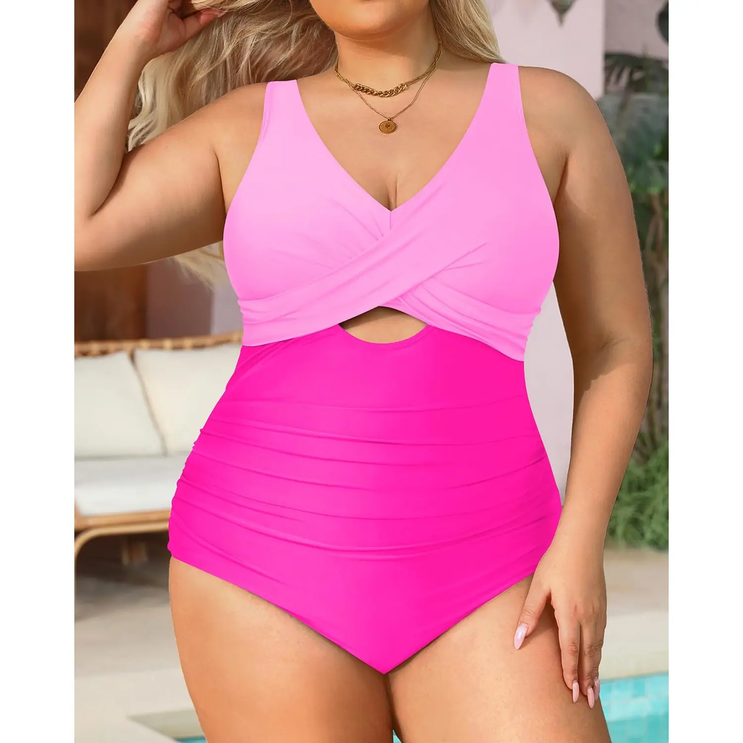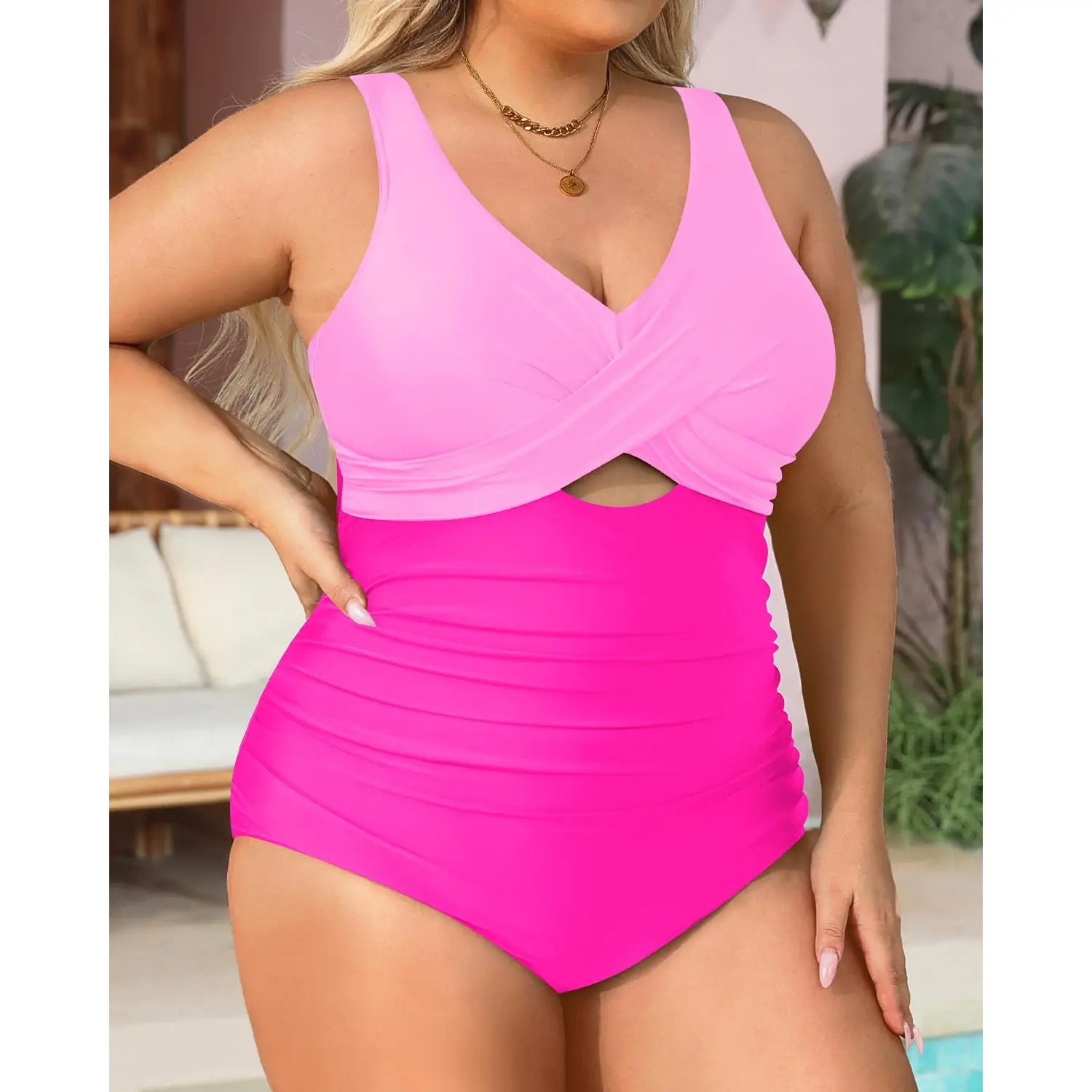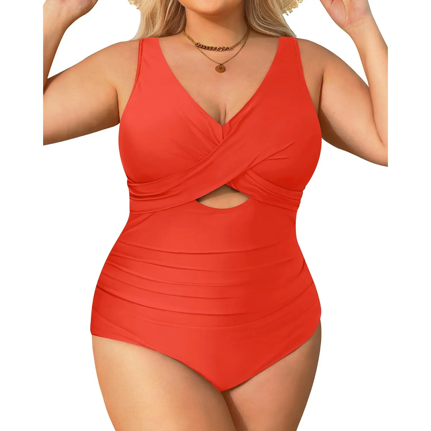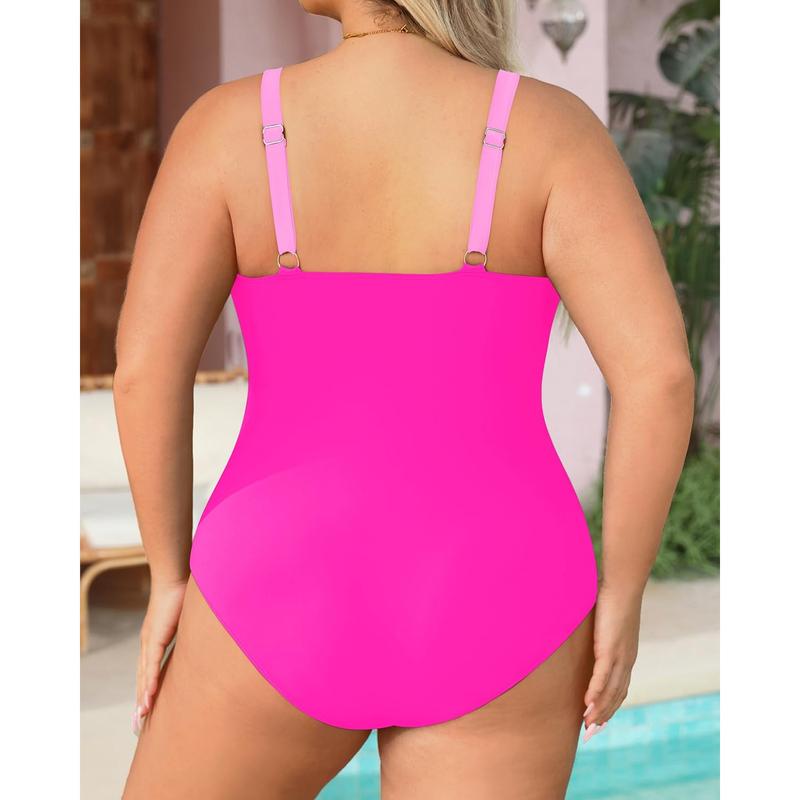 ·Plus Size One Piece Swimsuit: The twist-front and V-neck swimwear perfectly accentuates your neck curve. This sexy one-piece bathing suit gives you a fashionable look.