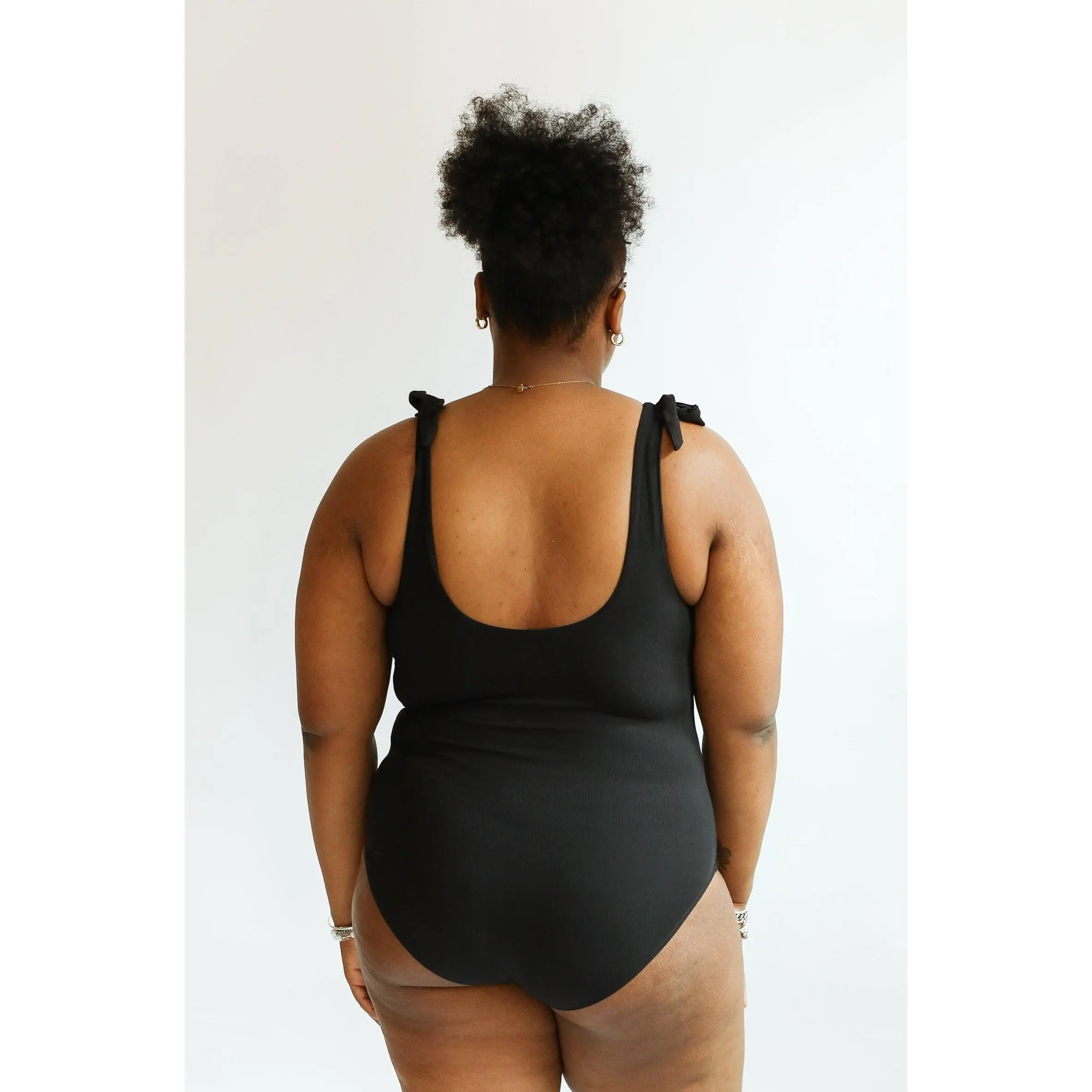 Note that some minor changes have been made to this style compared to our "flat fabric" tie shoulder one piece swimsuits that were released in 2022 - the ties are slightly shorter to make them easier to manage. We've adjusted the construction of the butt/leg to be a better fit and have added darting at the bust to help the suit lay smoothly against your body. We can't wait to hear what you think!