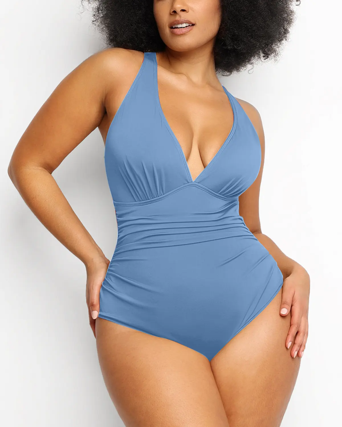 Front Ruched Swimsuit - Baby Blue, 2X