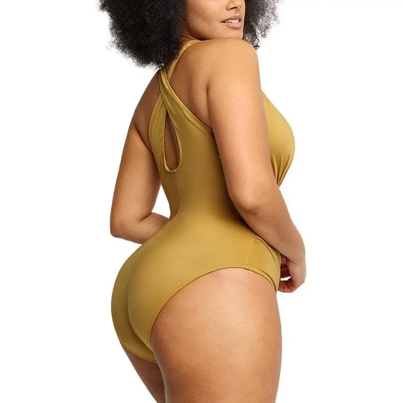 Front Ruched Swimsuit - Earth Yellow, XL