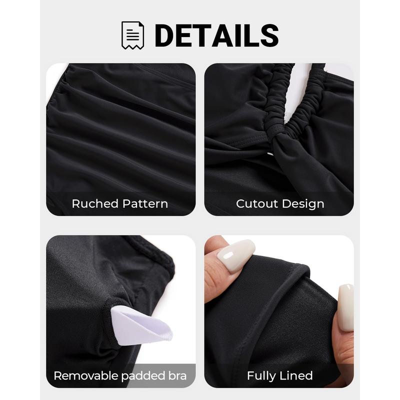 ·Tummy Control One Piece Bathing Suit: The ruched pattern at the waist hides your belly well. The cut-out design on the front makes you feel more attractive and charming.