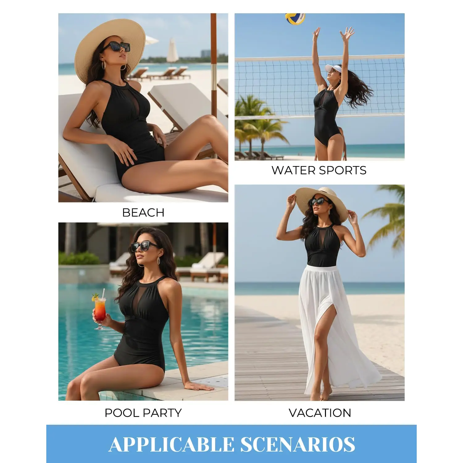 ·Tempt Me one piece high neck swimsuit design features a padded push-up bra and neck hook closure, providing support and shaping for a comfortable fit.