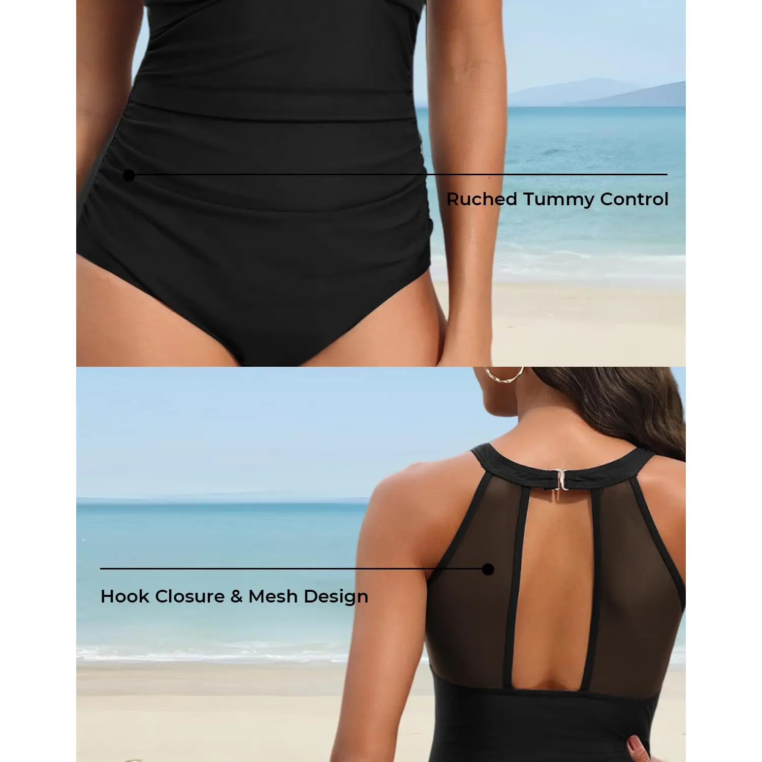 ·The ruched pattern in the one piece full coverage swimwear accentuates your curves and perfectly hides any imperfections, while still being flattering.