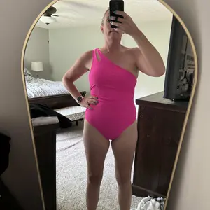 LOVE sooooo slimming! The prettiest pink ever and the one shoulder SLAYS. 10/10 for price and overall quality!
