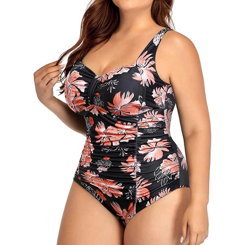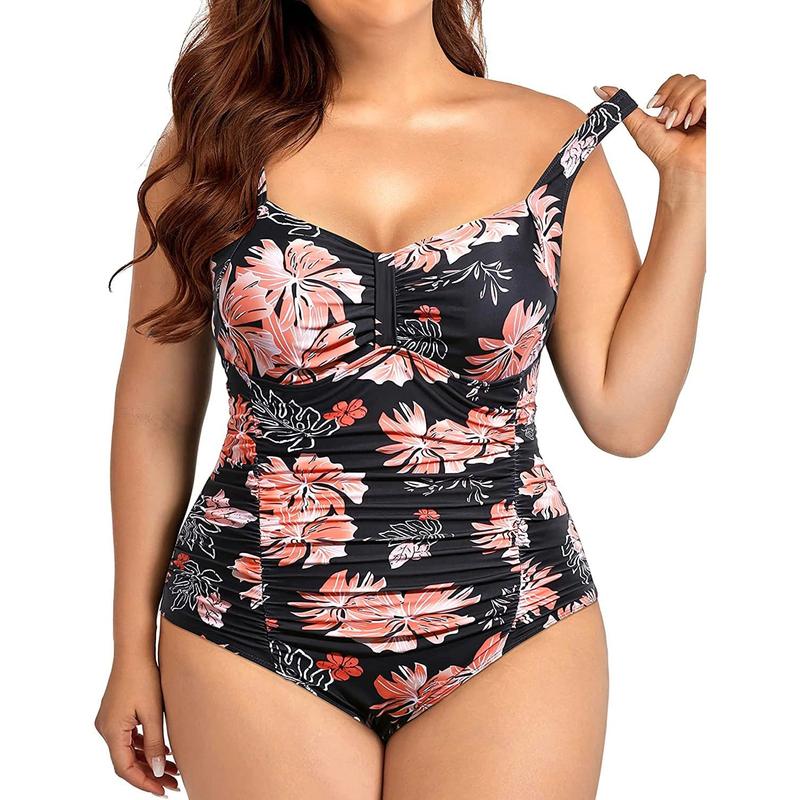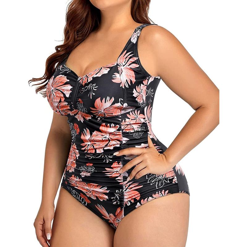 Daci Women Plus Size One Piece Swimsuits Tummy Control Vintage Ruched Bathing Suits Retro Swimwear
