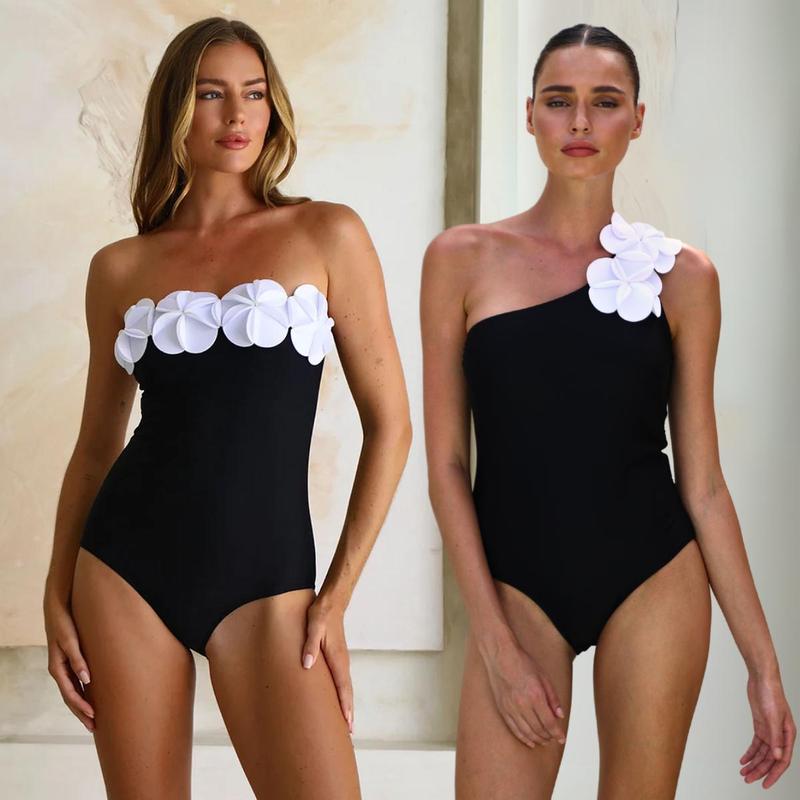 FLAXMAKER Women's 3D Flower Black and White Color Block One Piece Swimsuit and Matching Cover Skirt Set Swimming Dress Swimwear Bathing Suit Stylish Beachwear #TikTokShopBlackFriday