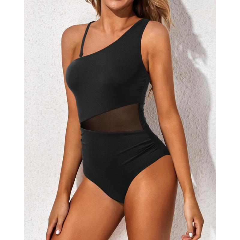 ·One Shoulder Swimsuit: This mesh one piece bathing suit features asymmetric one-shoulder, see through mesh style and backless design, making you comfortable and sexy.