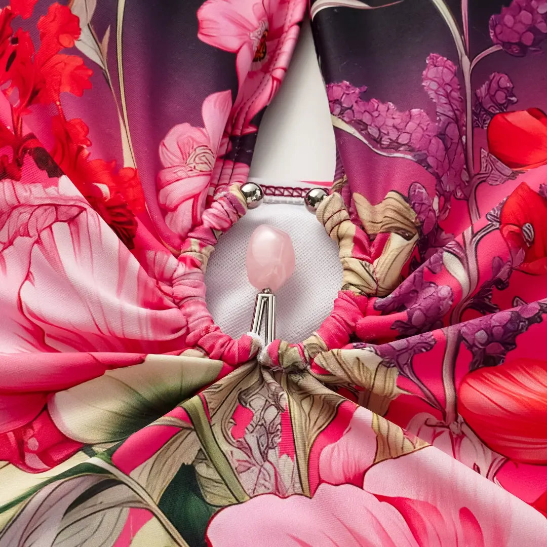 Beautiful pattern. Fits well for my 38DD chest, I’m 5’2 and the skirt is the perfect length, so might keep that in mind when buying.