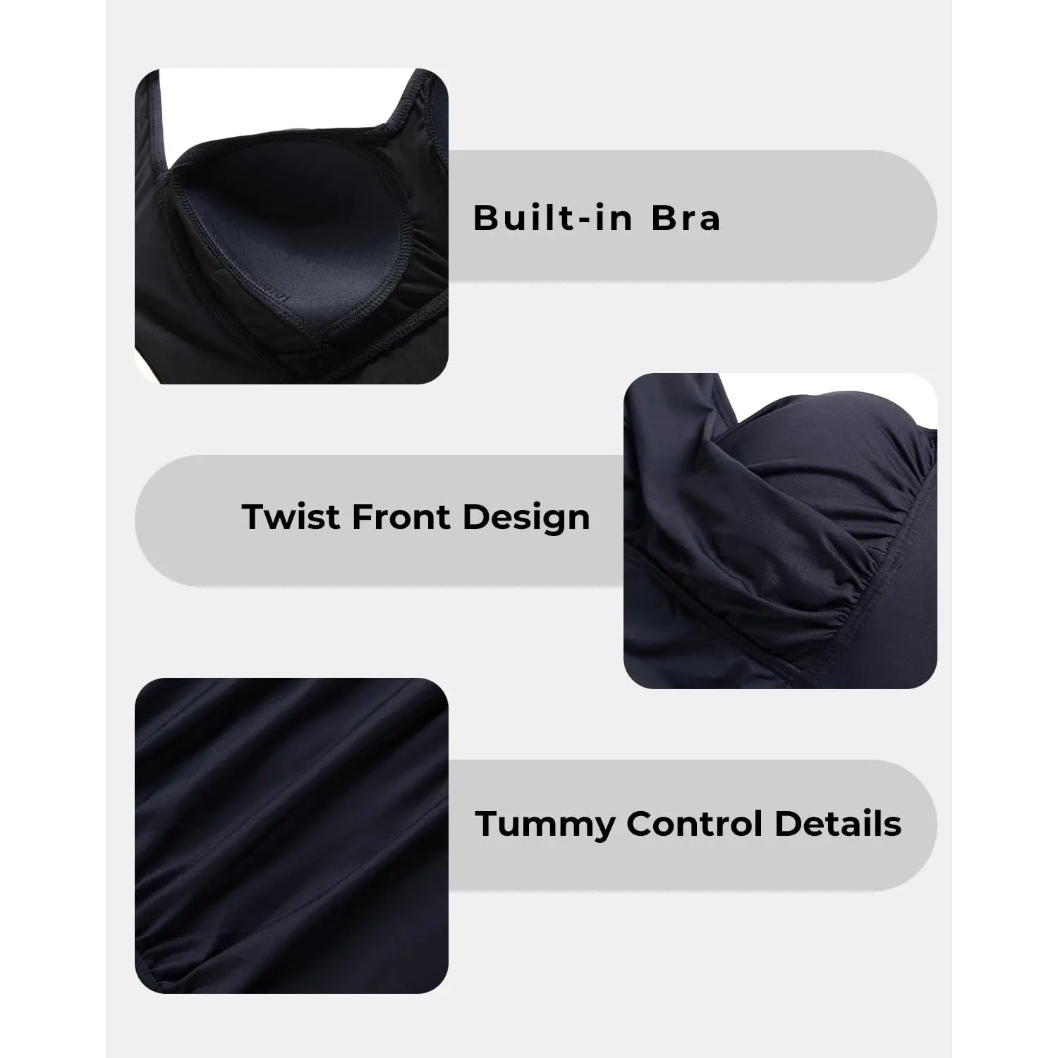·One Piece Tummy Control Bathing Suit: The ruched design gives you full coverage while also being sexy and modest. This one-piece swimsuit with shorts accentuates your curves, making you look slimmer.