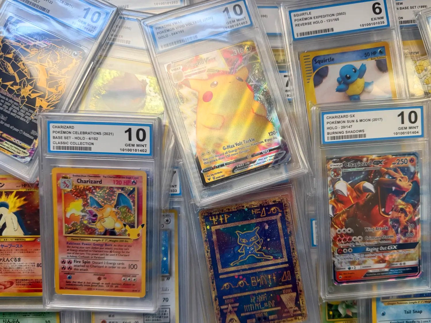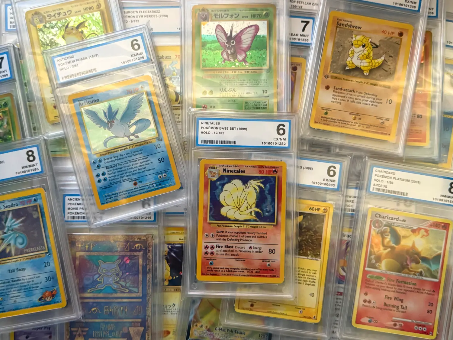 1x Pokémon Card authenticated, graded, and encapsulated by OCG. The set and grade are chosen at random. The images display possible cards you might get, but there's a chance of receiving an unlisted card in a different grade. Enjoy the surprise of your unique Pokémon card!