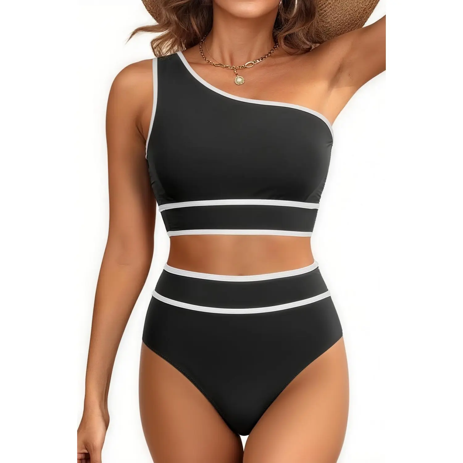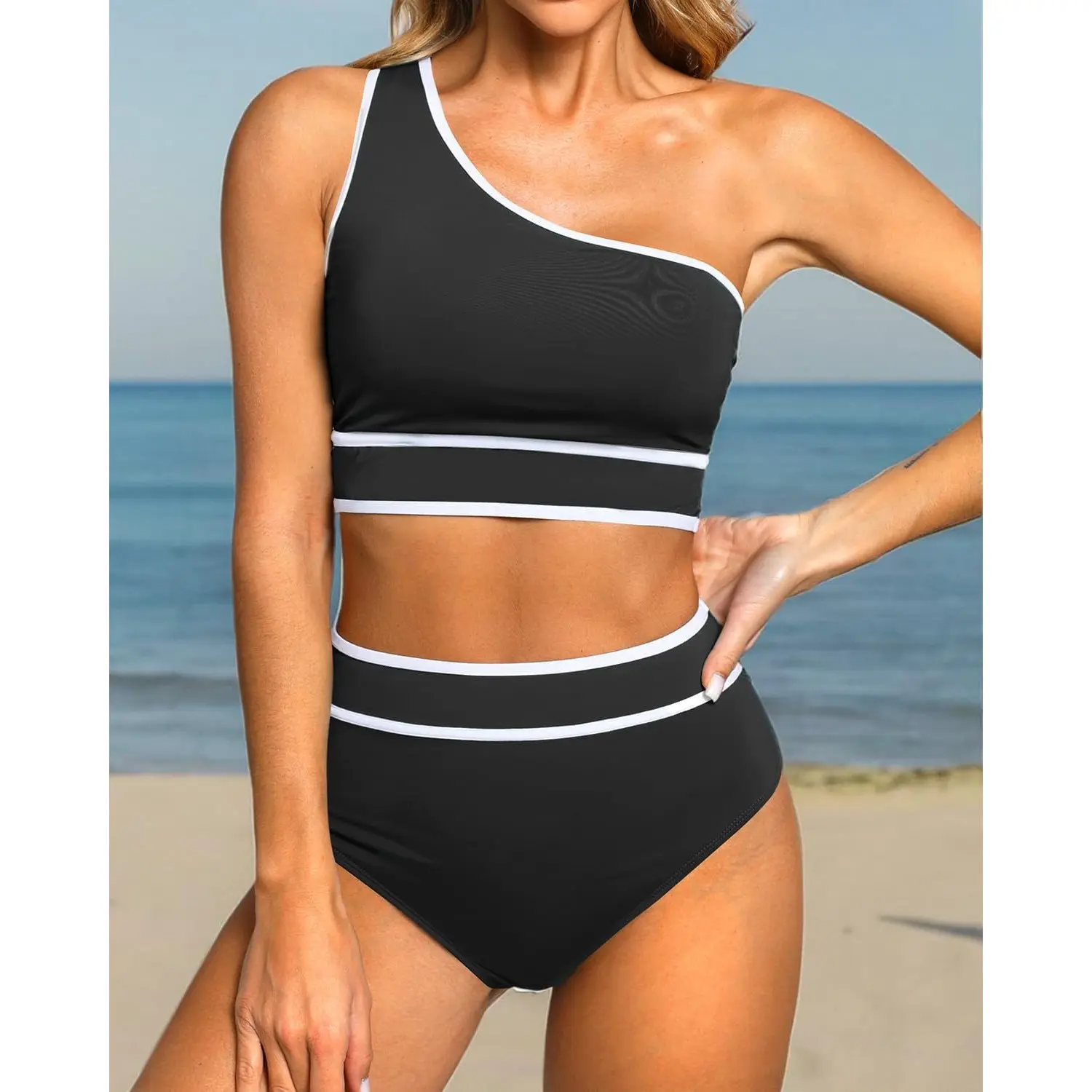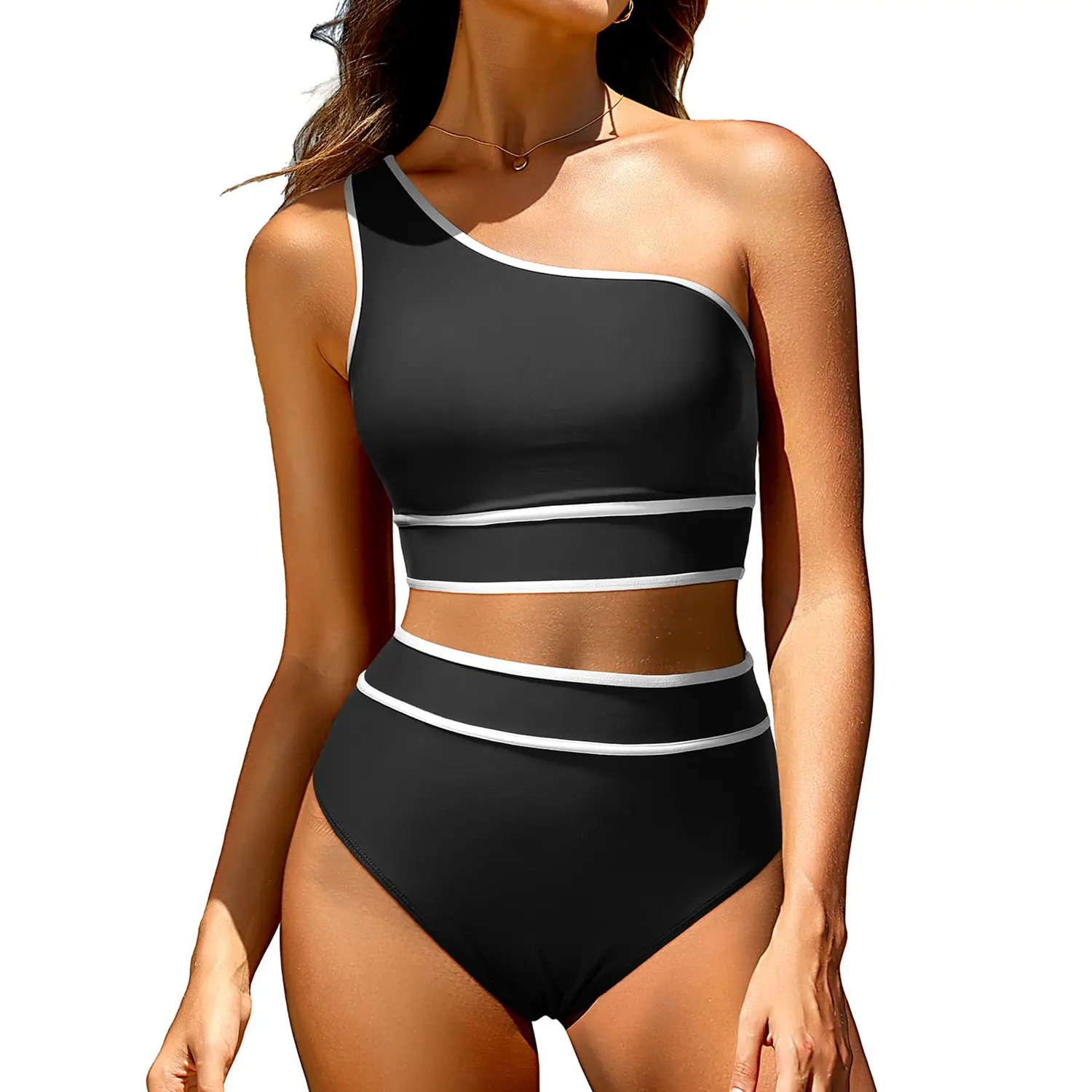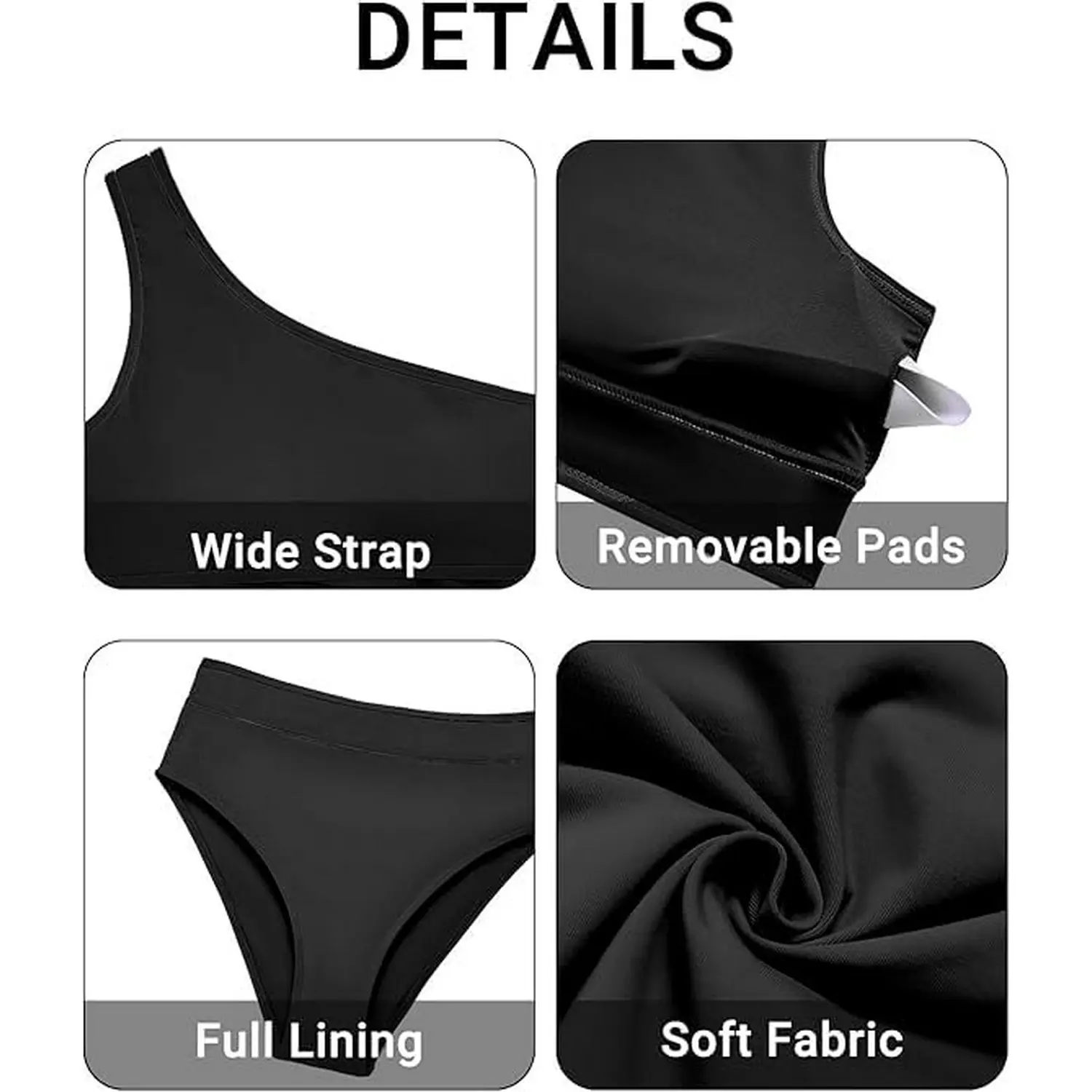 ·One Shoulder Bikini: This sporty cropped top features a wide shoulder strap on one side and has built-in removable padding for good chest support and coverage.